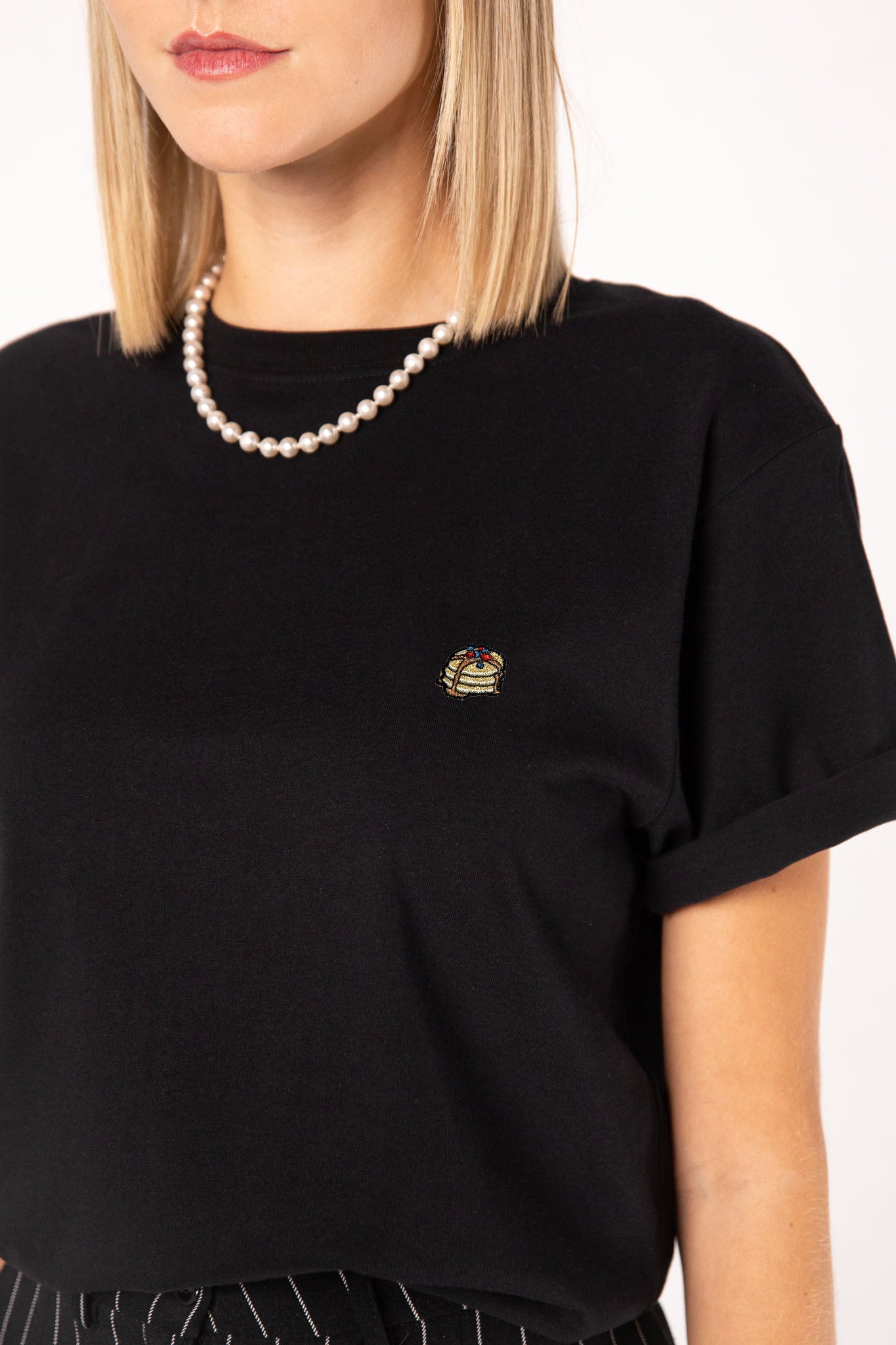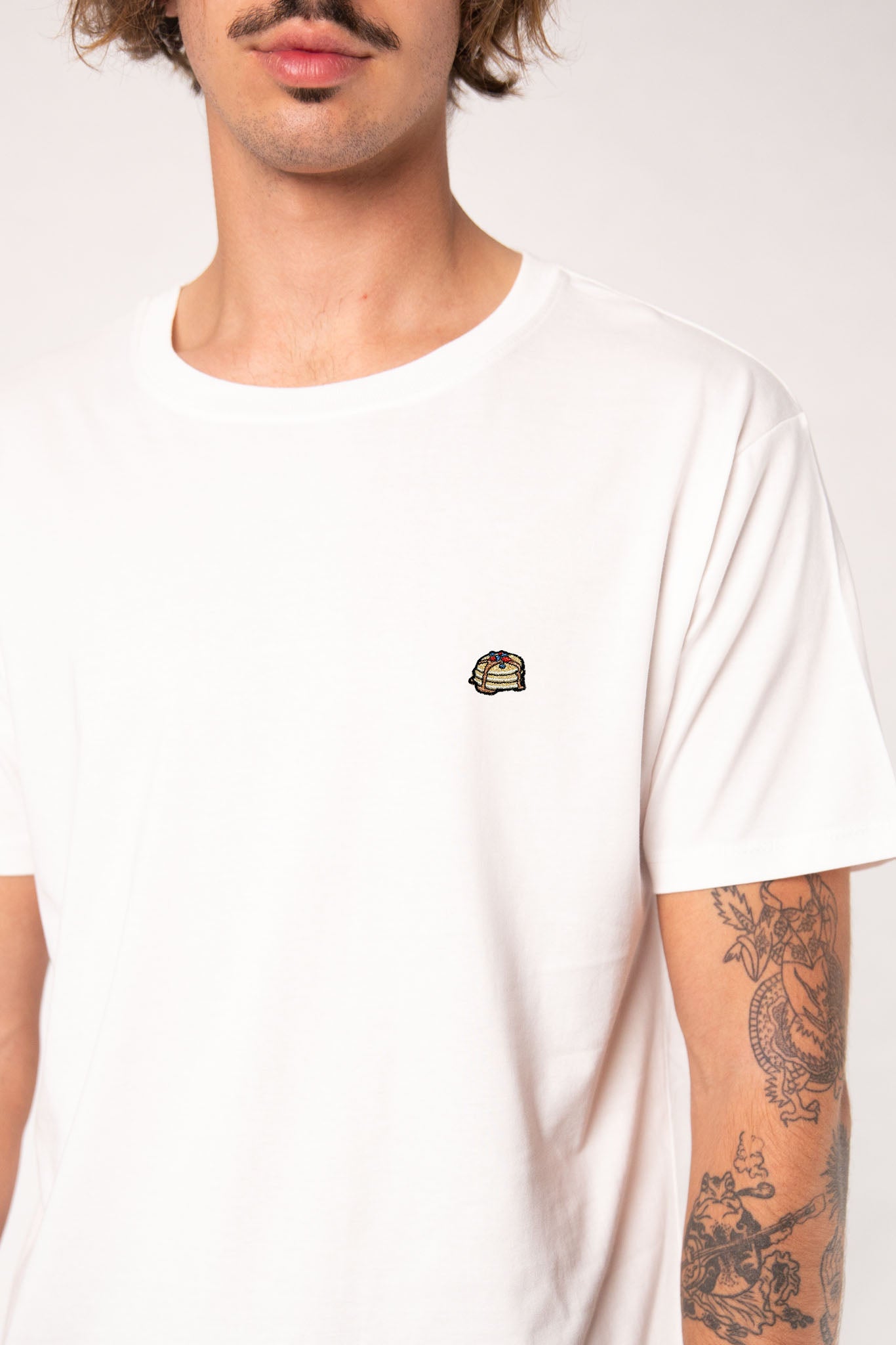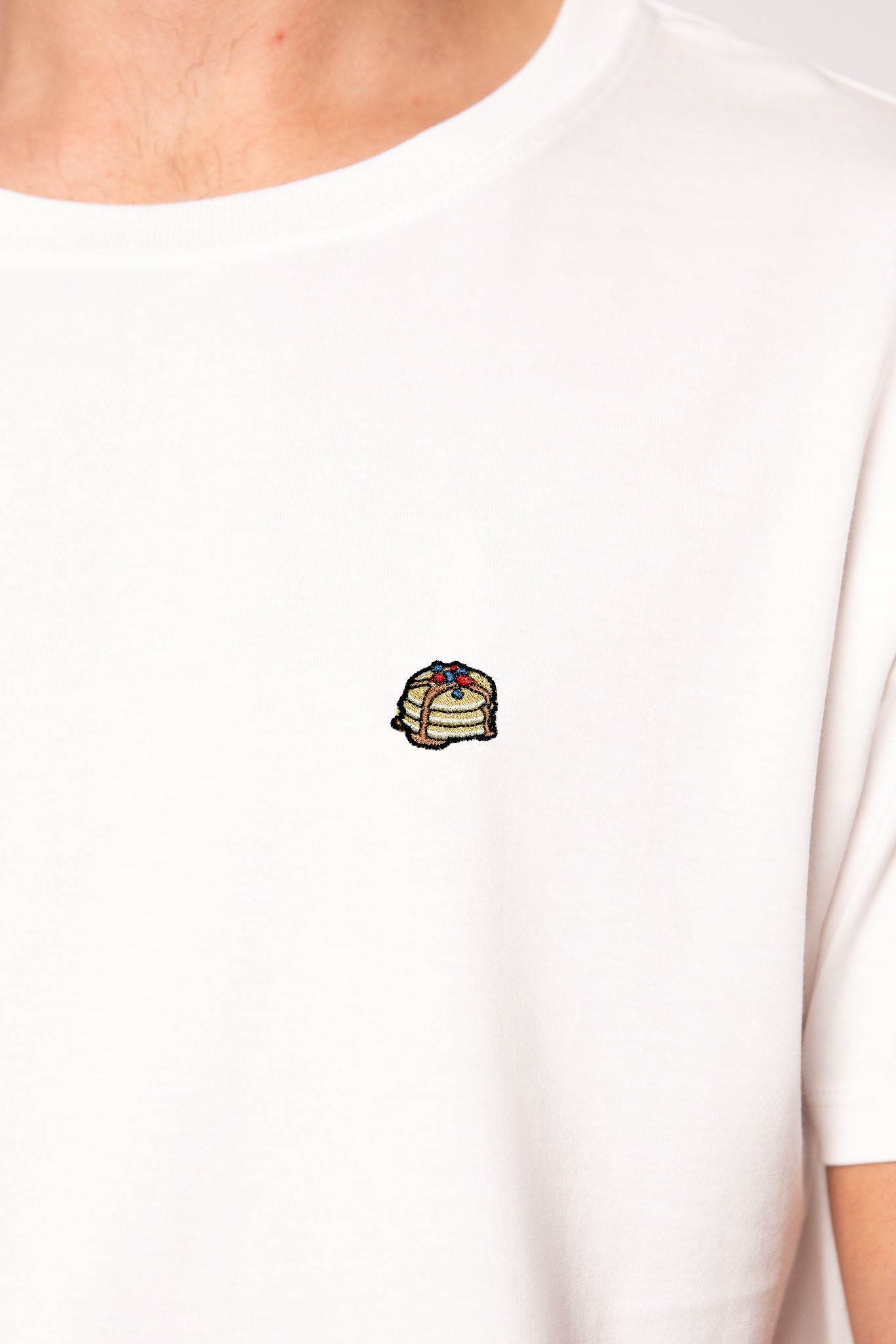 Besticktes Bio Baumwoll Unisex T-Shirt mit schwerem Stoff (190gsm) und gesticktem Pancakes Design
