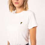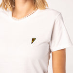Besticktes Bio Baumwoll Frauen T-Shirt mit extrem angenehmen Stoff (155gsm) und gesticktem Pizza Design