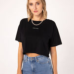 Super hochwertiges Bio Baumwoll Cropped T-Shirt mit gesticktem Vodka Soda Schriftzug in drei verschiedenen Schnitt-Varianten: Ripped, Regular & Oversized