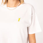 Super hochwertiges Bio Baumwoll Cropped T-Shirt mit gesticktem Weißbier Design in drei verschiedenen Schnitt-Varianten: Ripped, Regular & Oversized