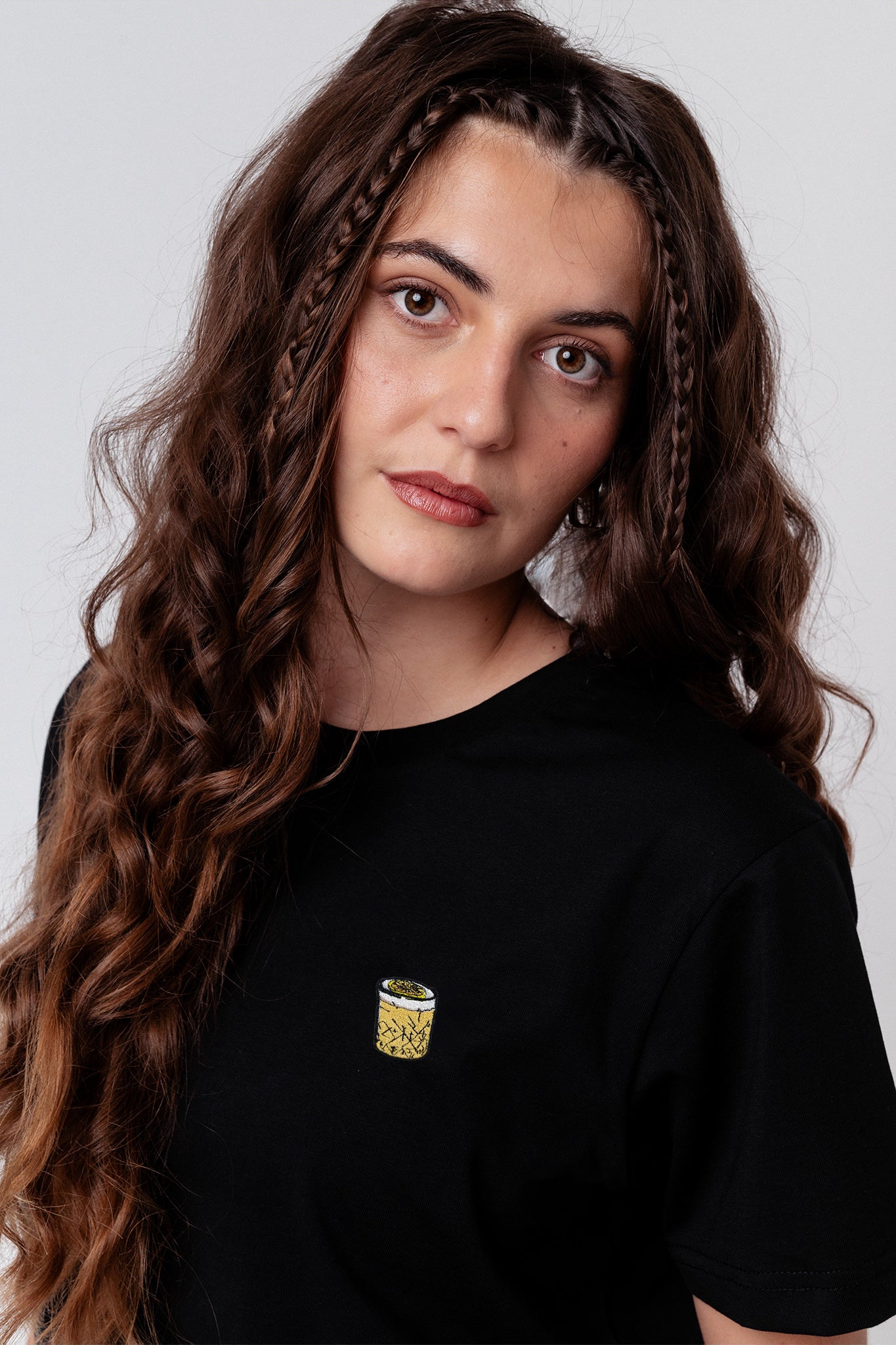 Besticktes Bio Baumwoll Unisex T-Shirt mit schwerem Stoff (190gsm) und gesticktem Whisky Sour Design