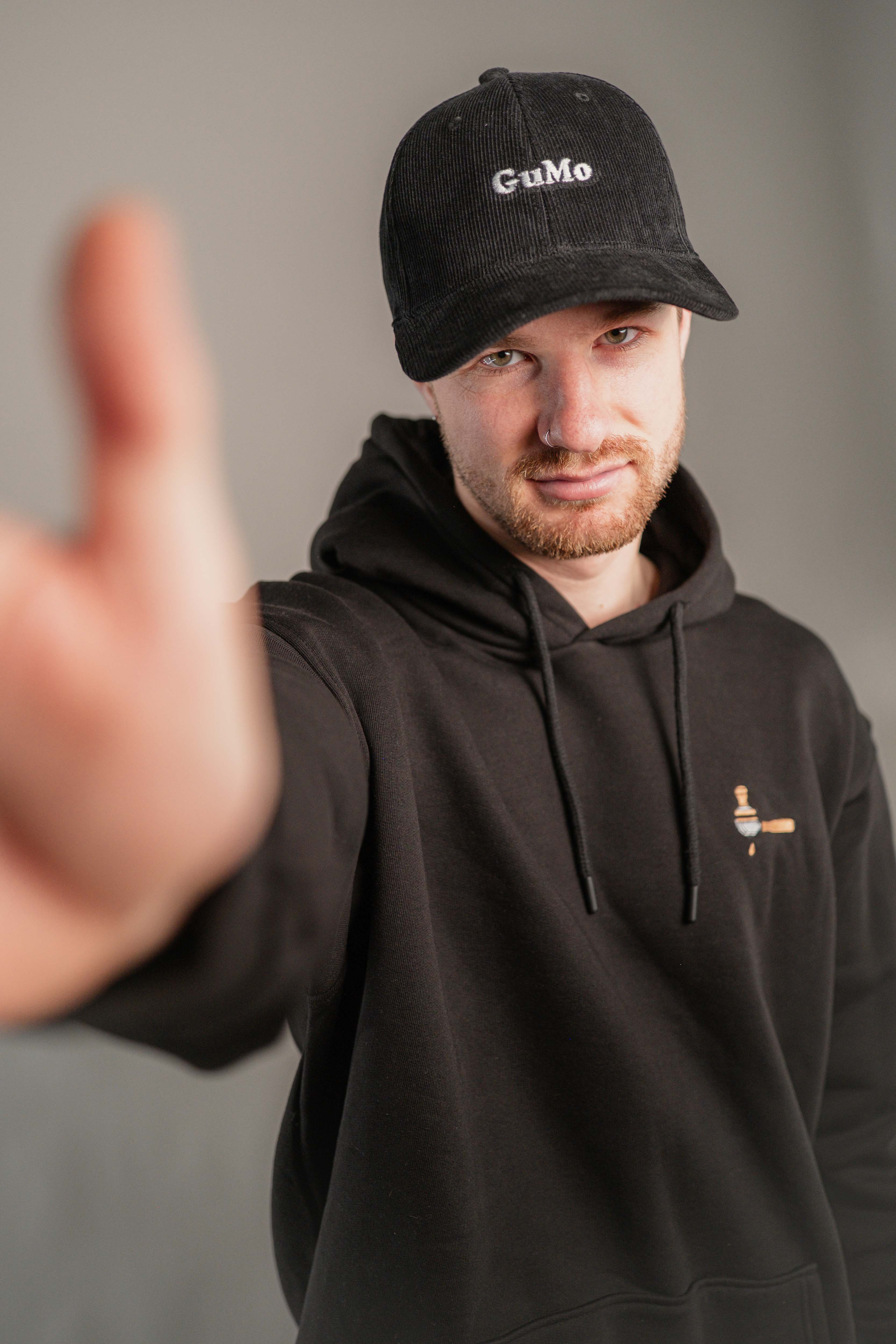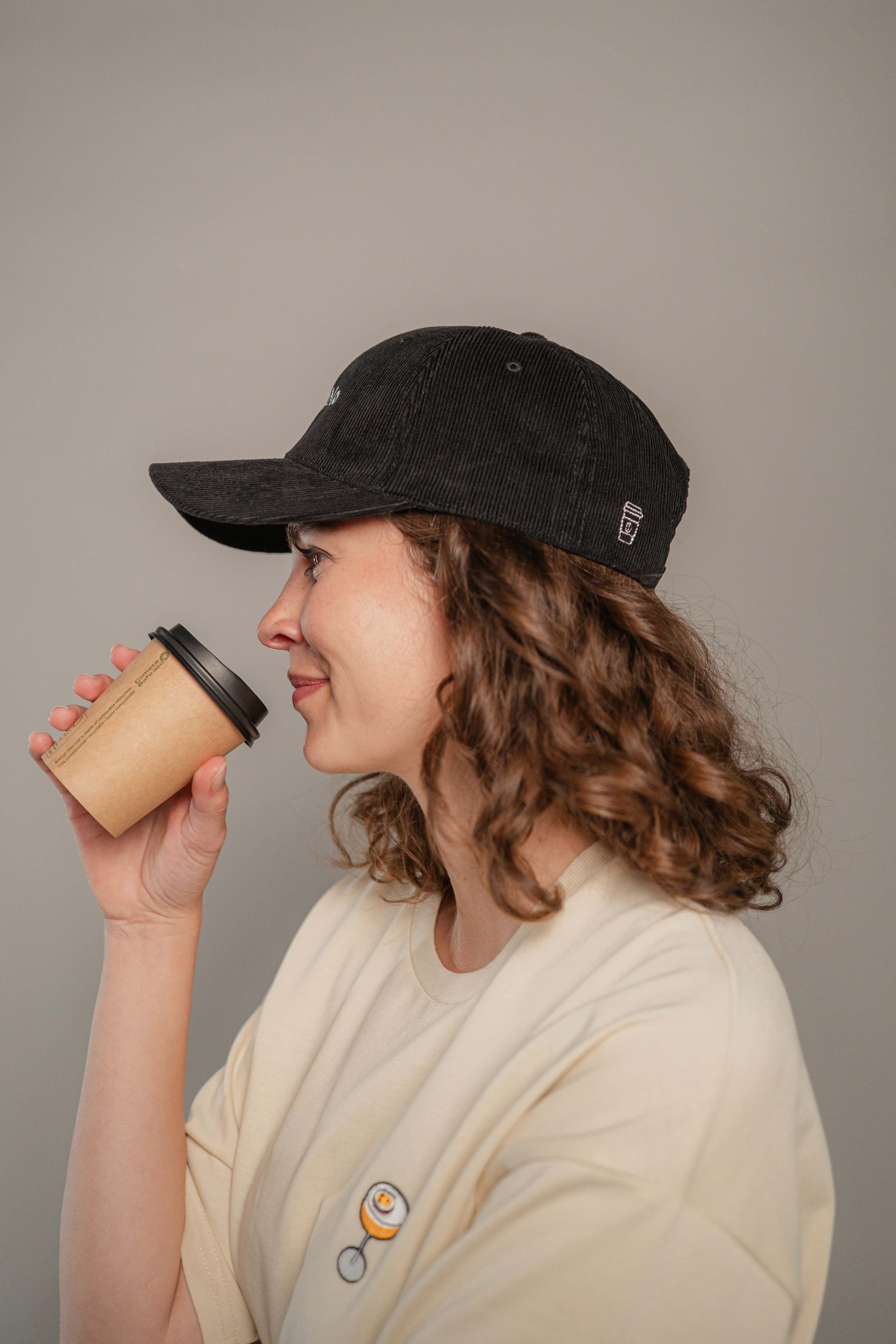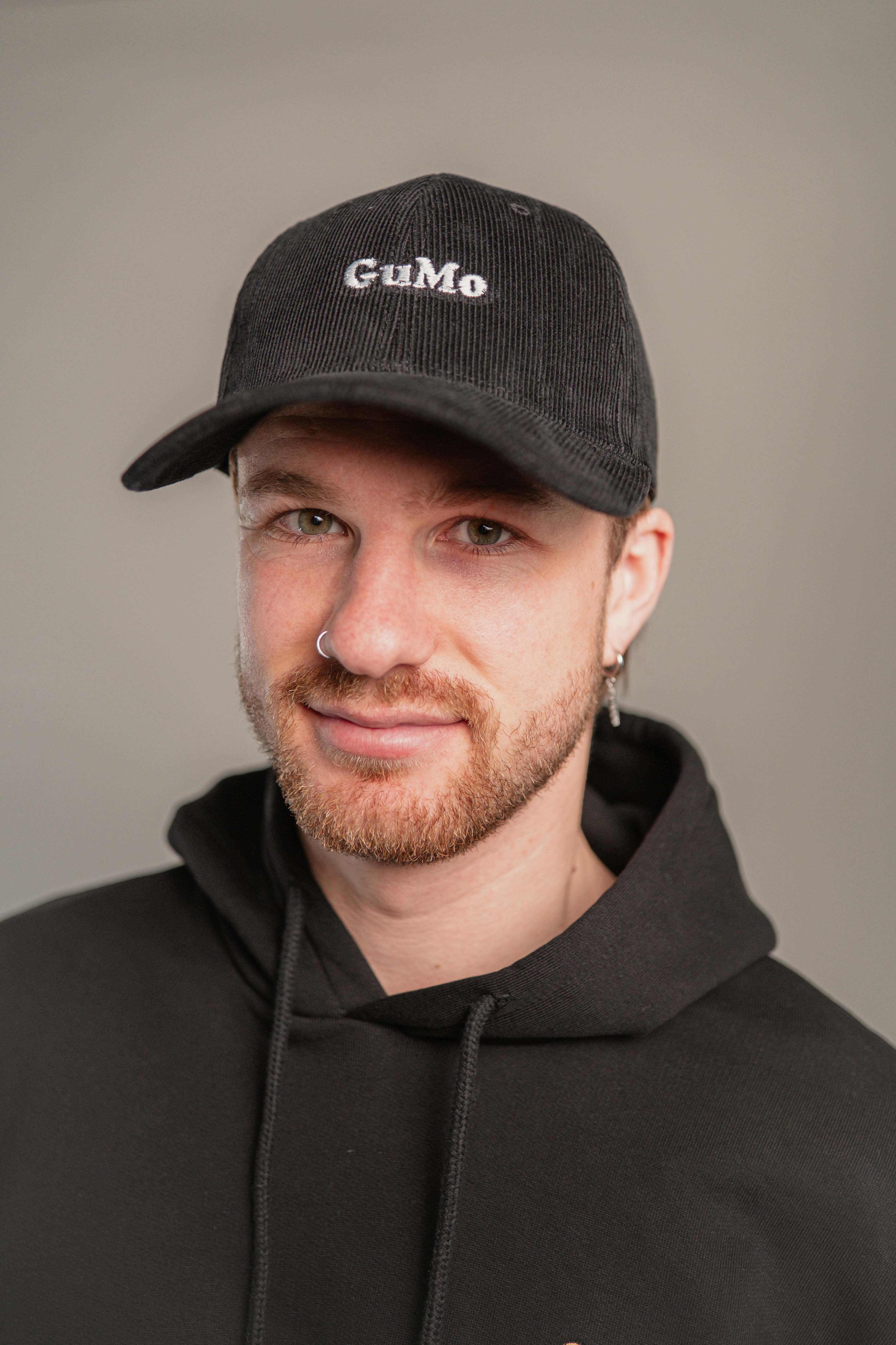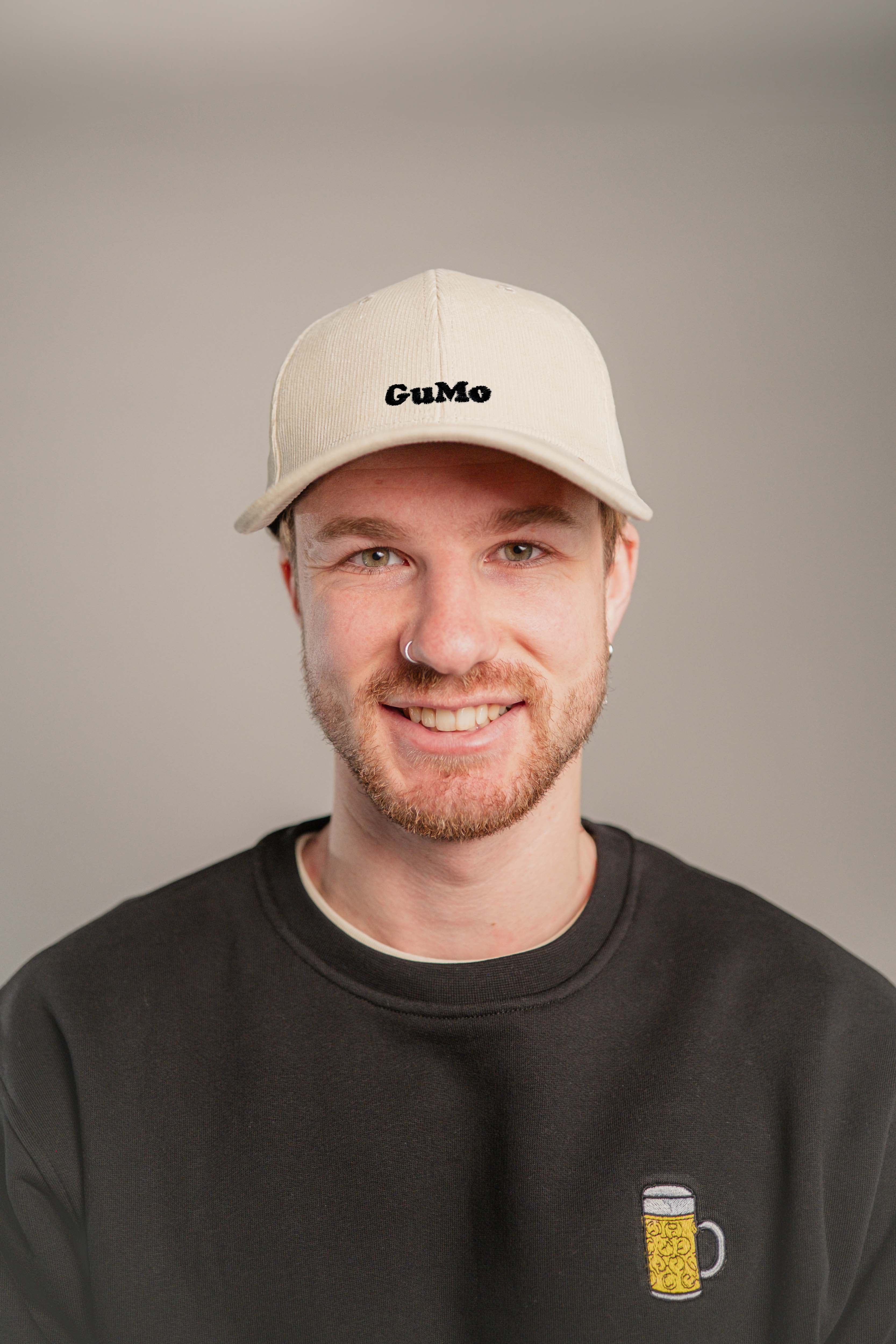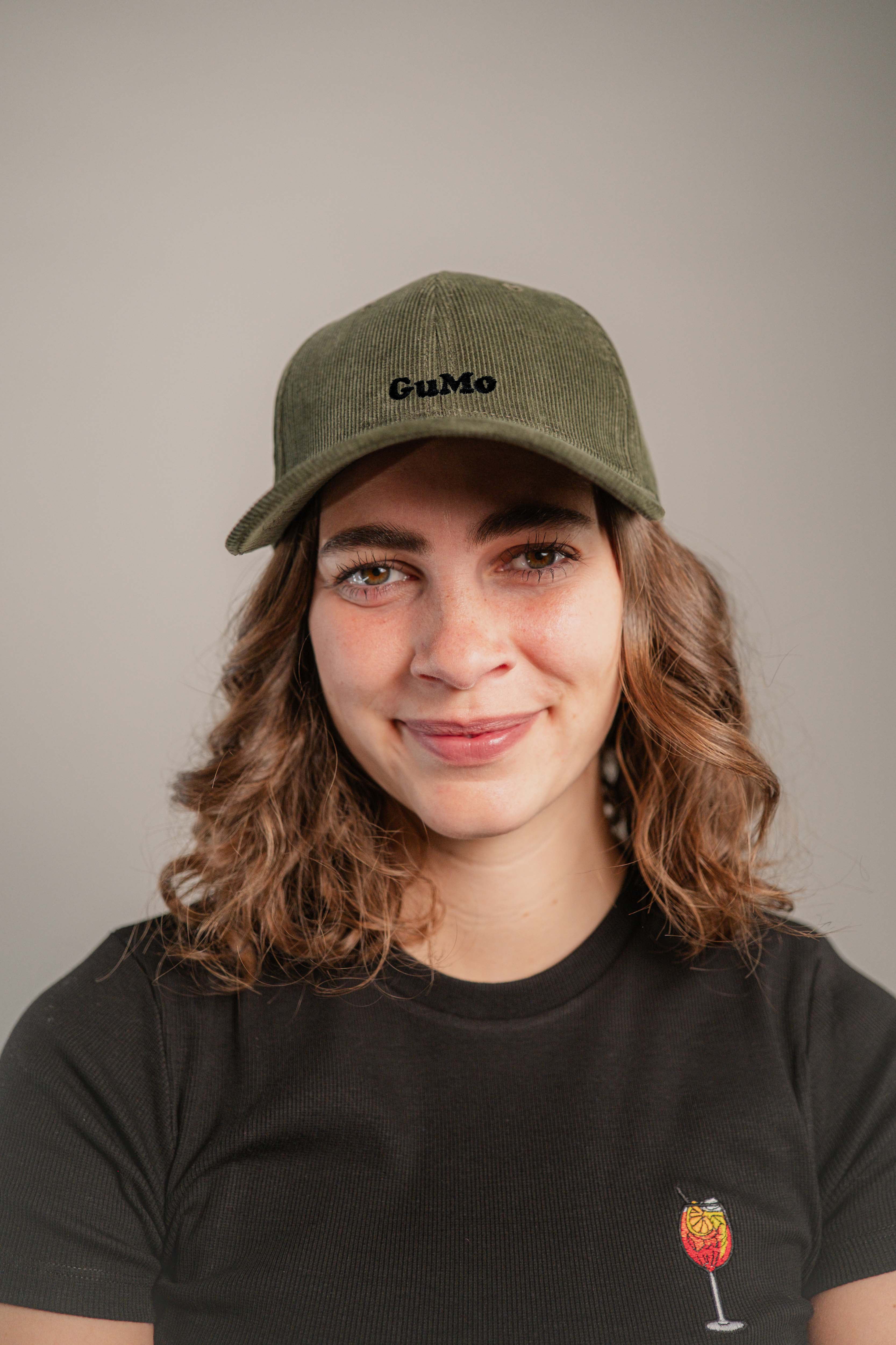 Super hochwertige Cord Cap aus 100% Bio Baumwolle mit gestickten "GuMo" Schriftzug vorne und kleinem gesticktem Kaffeebecher seitlich