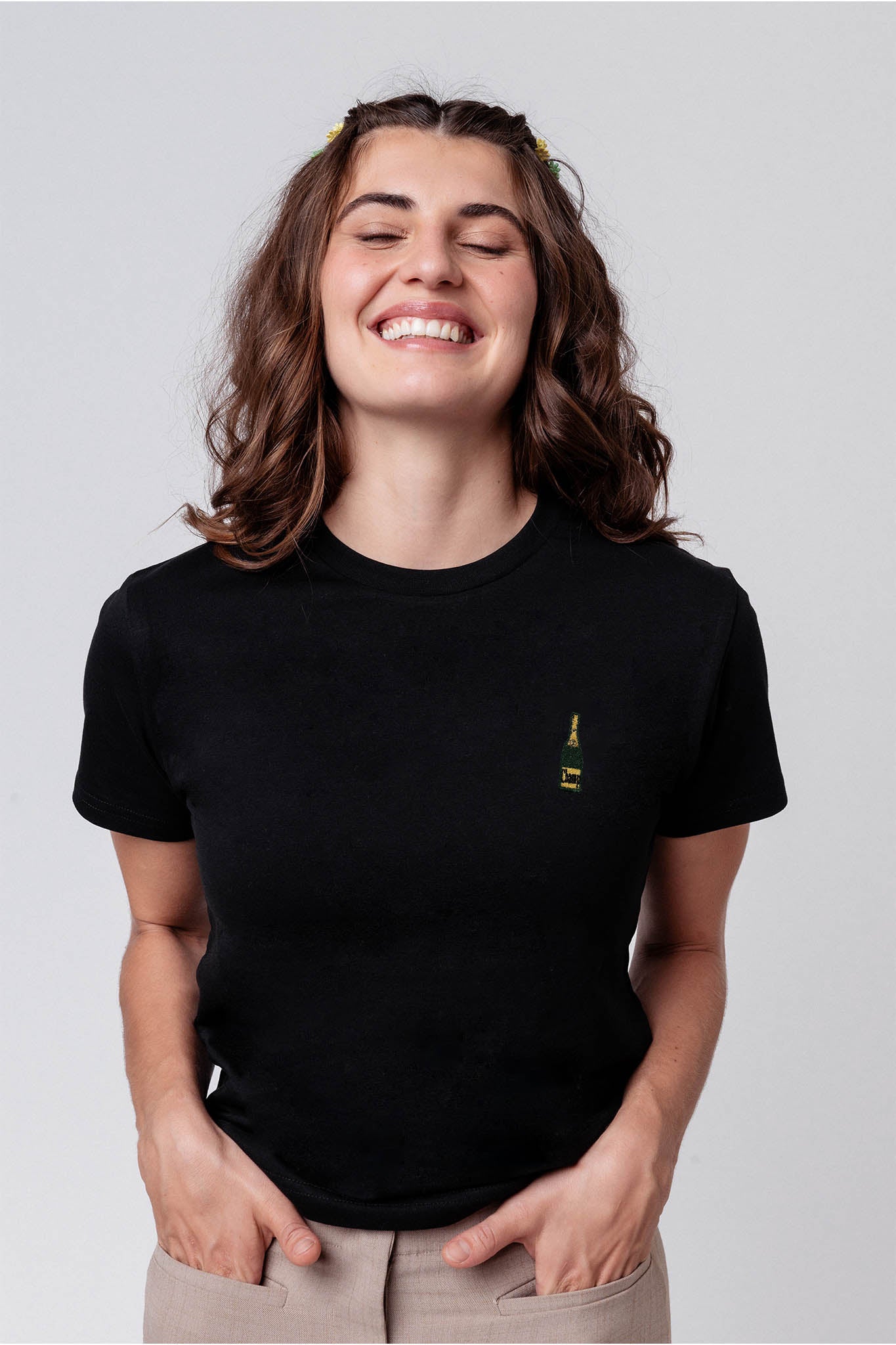 Besticktes Bio Baumwoll Frauen T-Shirt mit extrem angenehmen Stoff (155gsm) und gesticktem Champagner Design