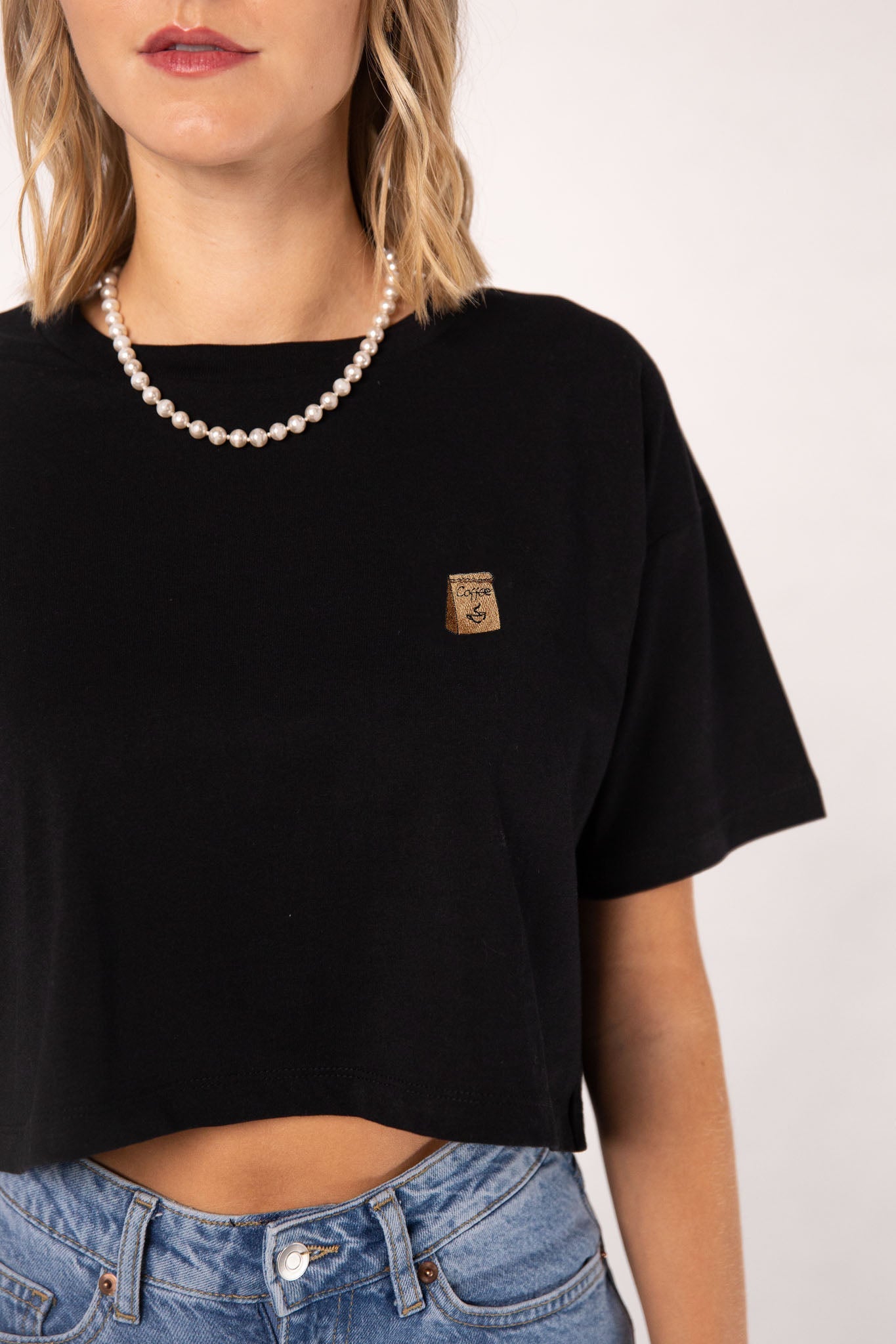 Coffee Bag | Besticktes Bio Baumwoll Cropped T-Shirt