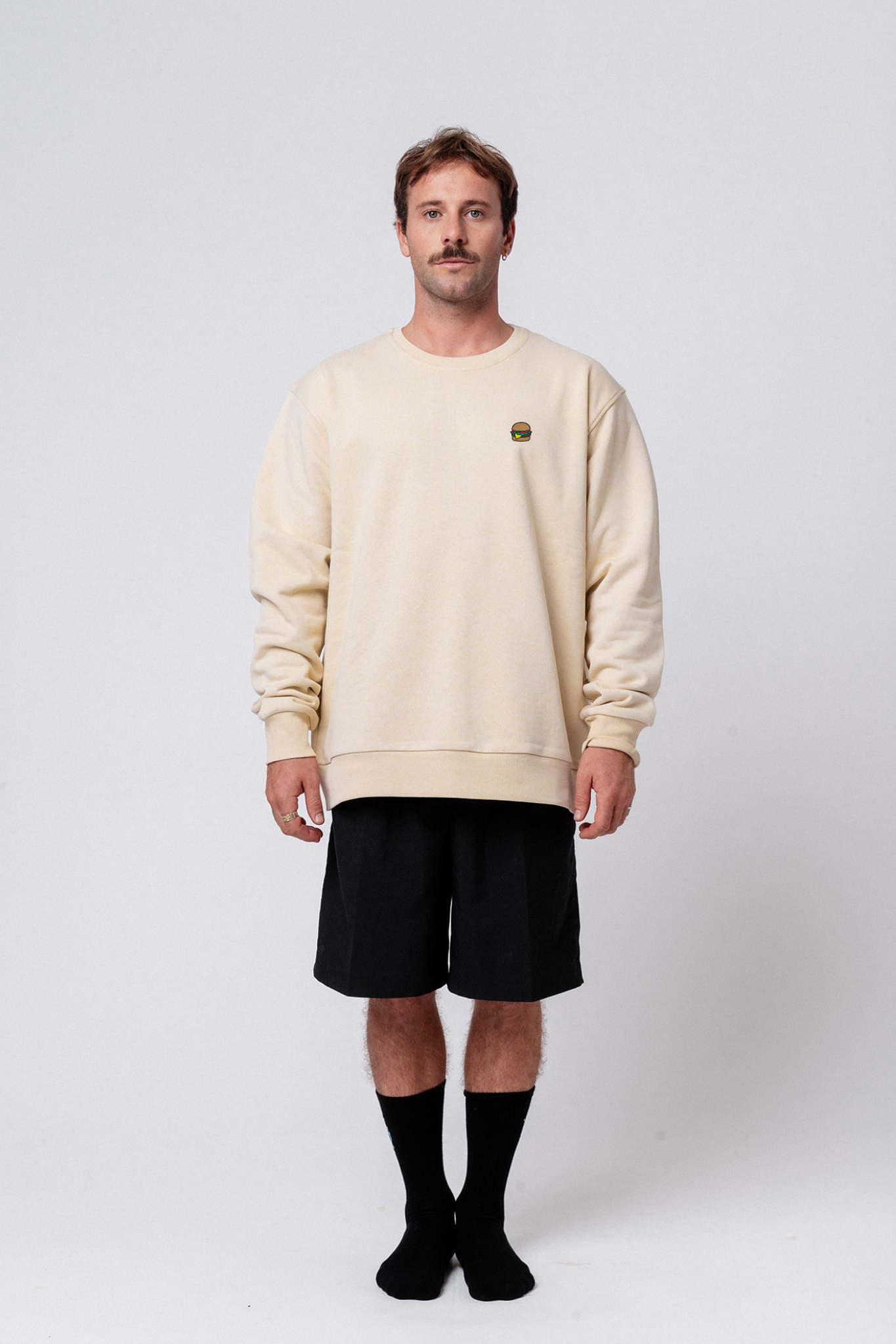 Bestickter Bio Baumwoll Unisex Pullover mit schwerem Stoff (320gsm) und gesticktem Burger Design