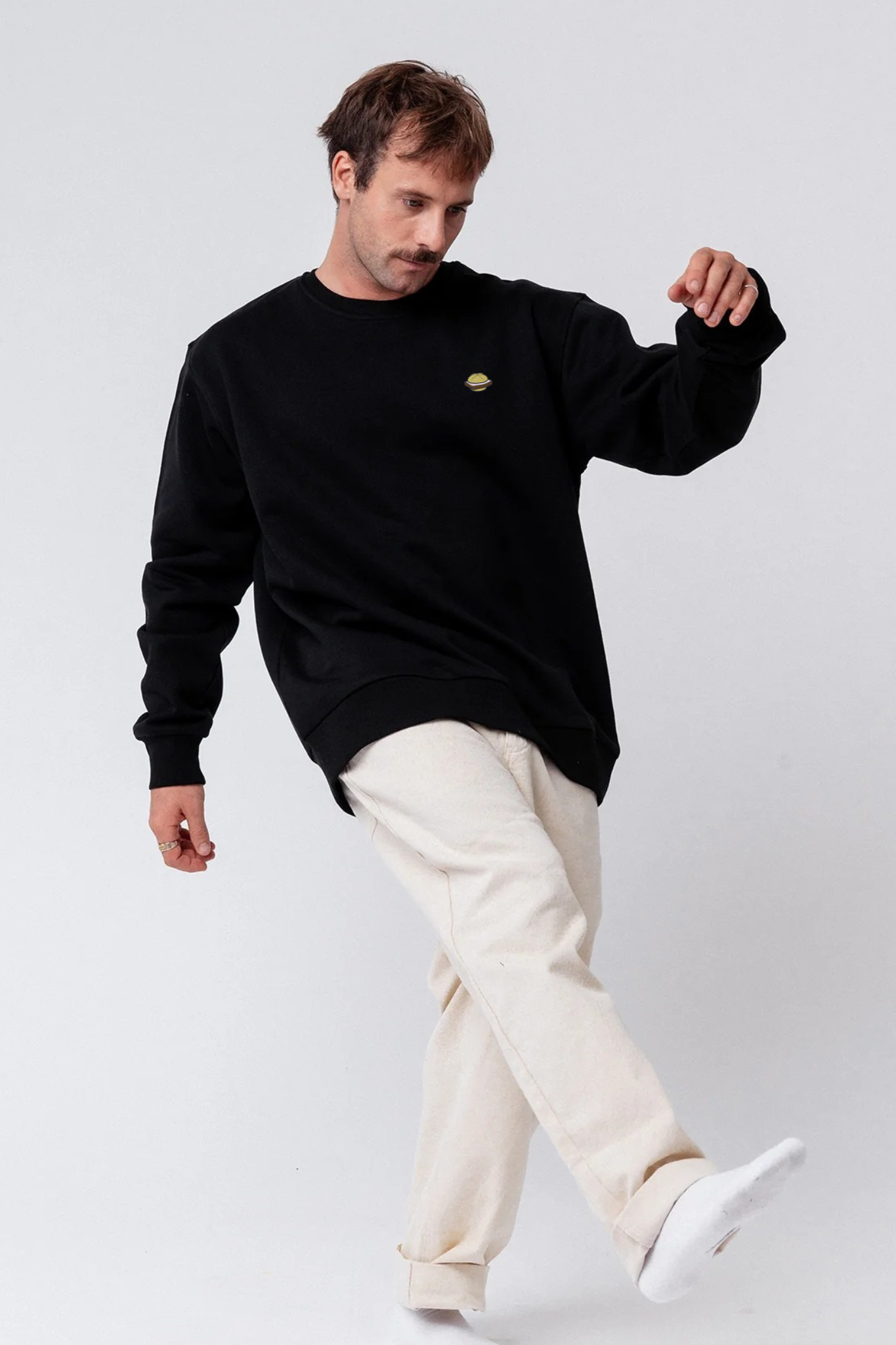 Bestickter Bio Baumwoll Unisex Pullover mit schwerem Stoff (320gsm) und gesticktem Leberkassemmel Design