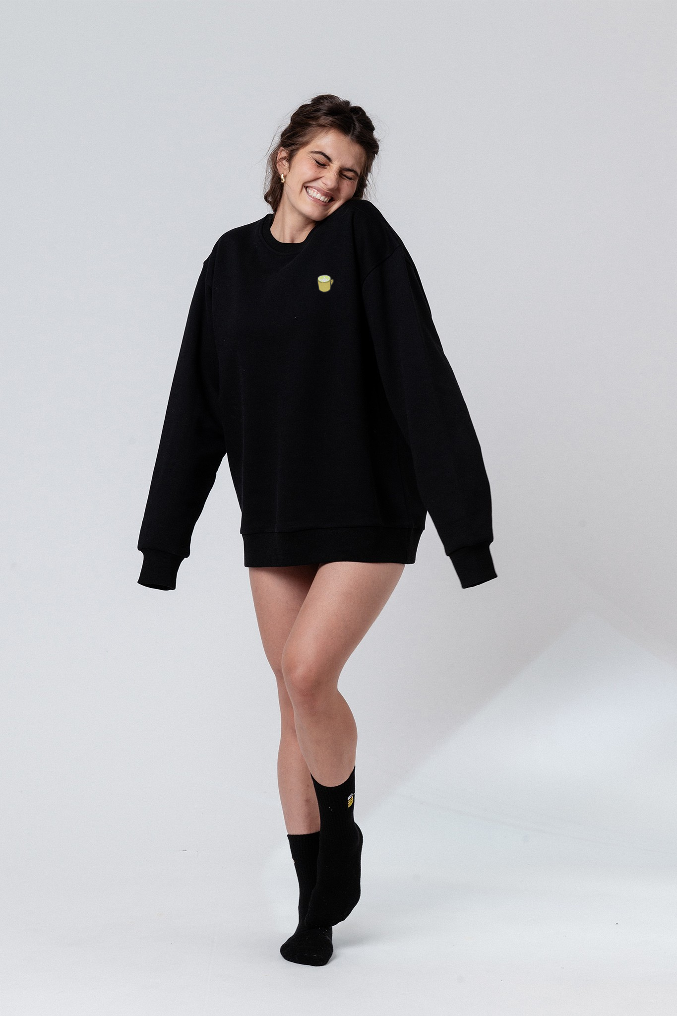 Super hochwertiger Bio Baumwoll Unisex Pullover mit extrem angenehmen Stoff (350gsm) und gesticktem Matcha Latte Design