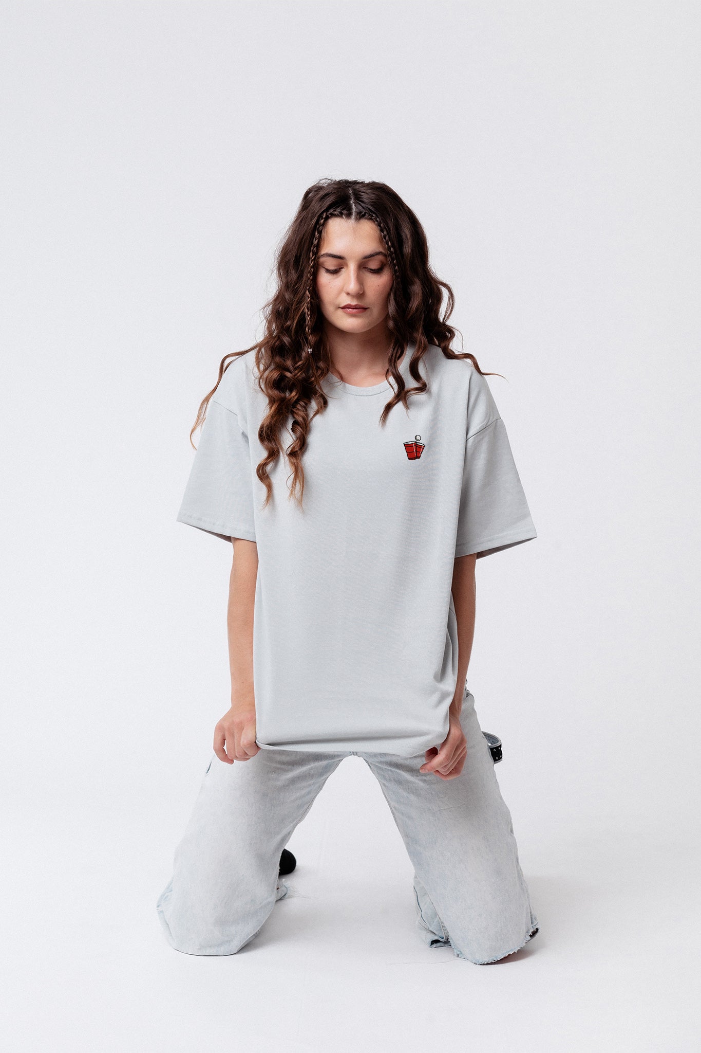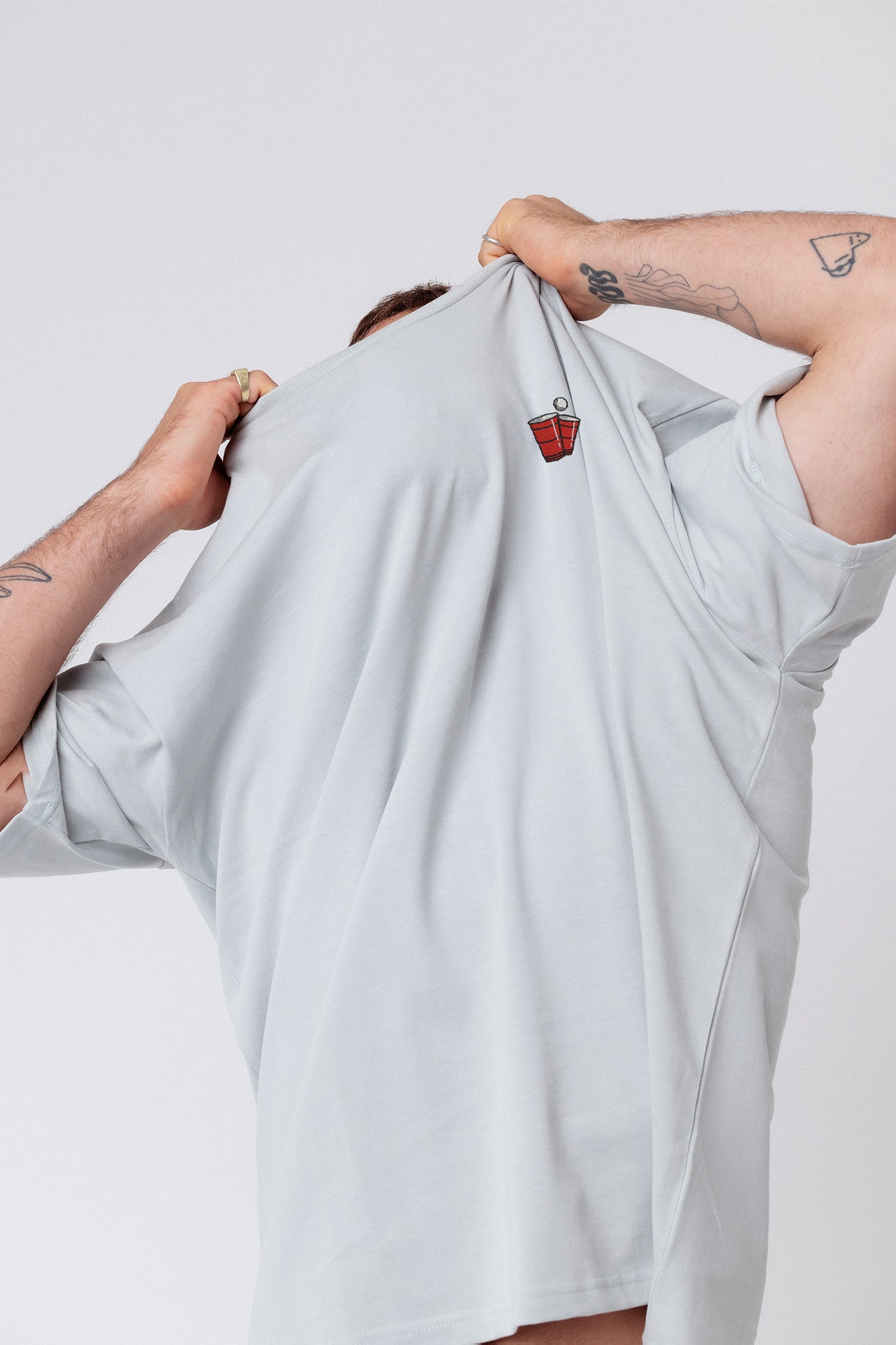 Heavy Oversized Bio Baumwoll T-Shirt mit extra schwerem Stoff (230gsm) und gesticktem Beerpong Design