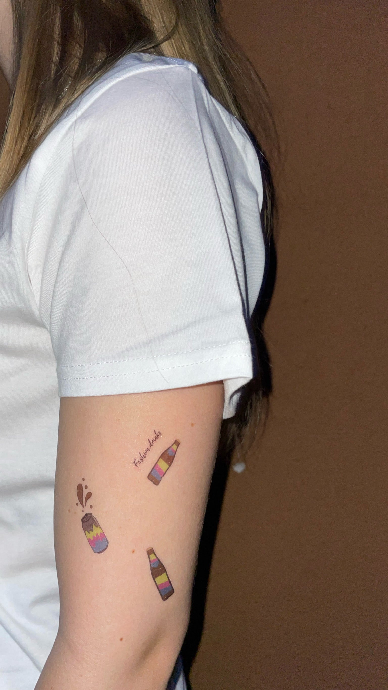 Prêt pour la saison des festivals ? Procure-toi nos tatouages adhésifs durables au design Cola Mix. Tu recevras une feuille A6 avec plusieurs tatouages Cola Mix comme illustré.