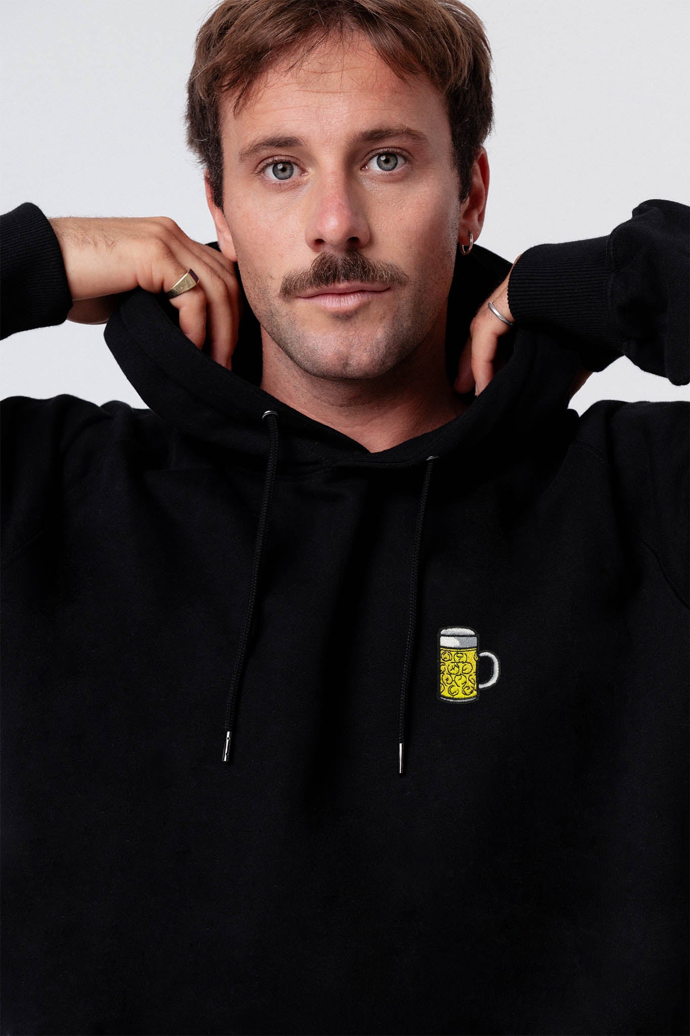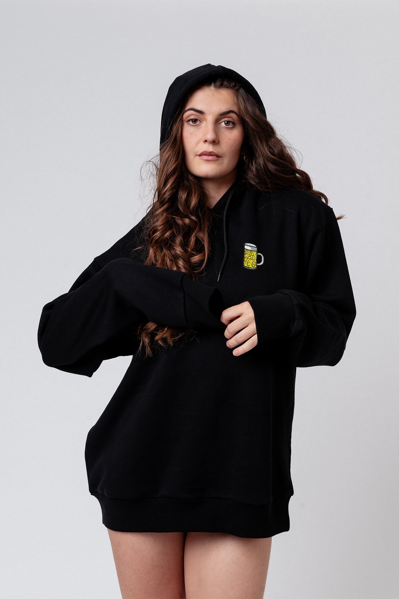 Hoodie unisexe en coton bio de super qualité avec un tissu lourd (350gsm) et un design de chope brodé.