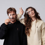 Wir sind Max und Gogo, Gründer der Wohnzimmer Bar in Deutschland. Als die Pandemie unsere Türen schloss, fanden wir einen neuen Weg, den Spirit am Leben zu erhalten – indem wir ikonische Getränke in einzigartige Modestücke verwandelten. Daraus entstand unsere Mode Brand FASHION DRINKS.