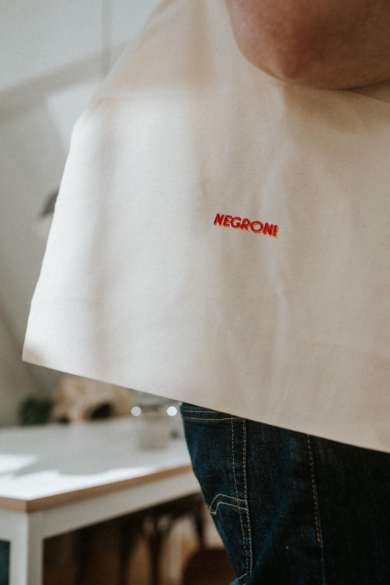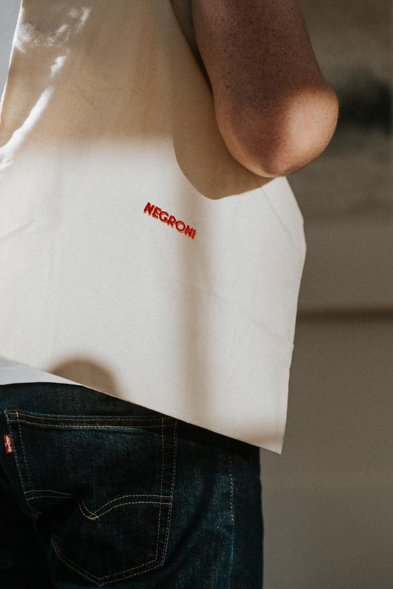 Sac de transport en coton bio brodé, produit de manière équitable, au design Negroni Signature.