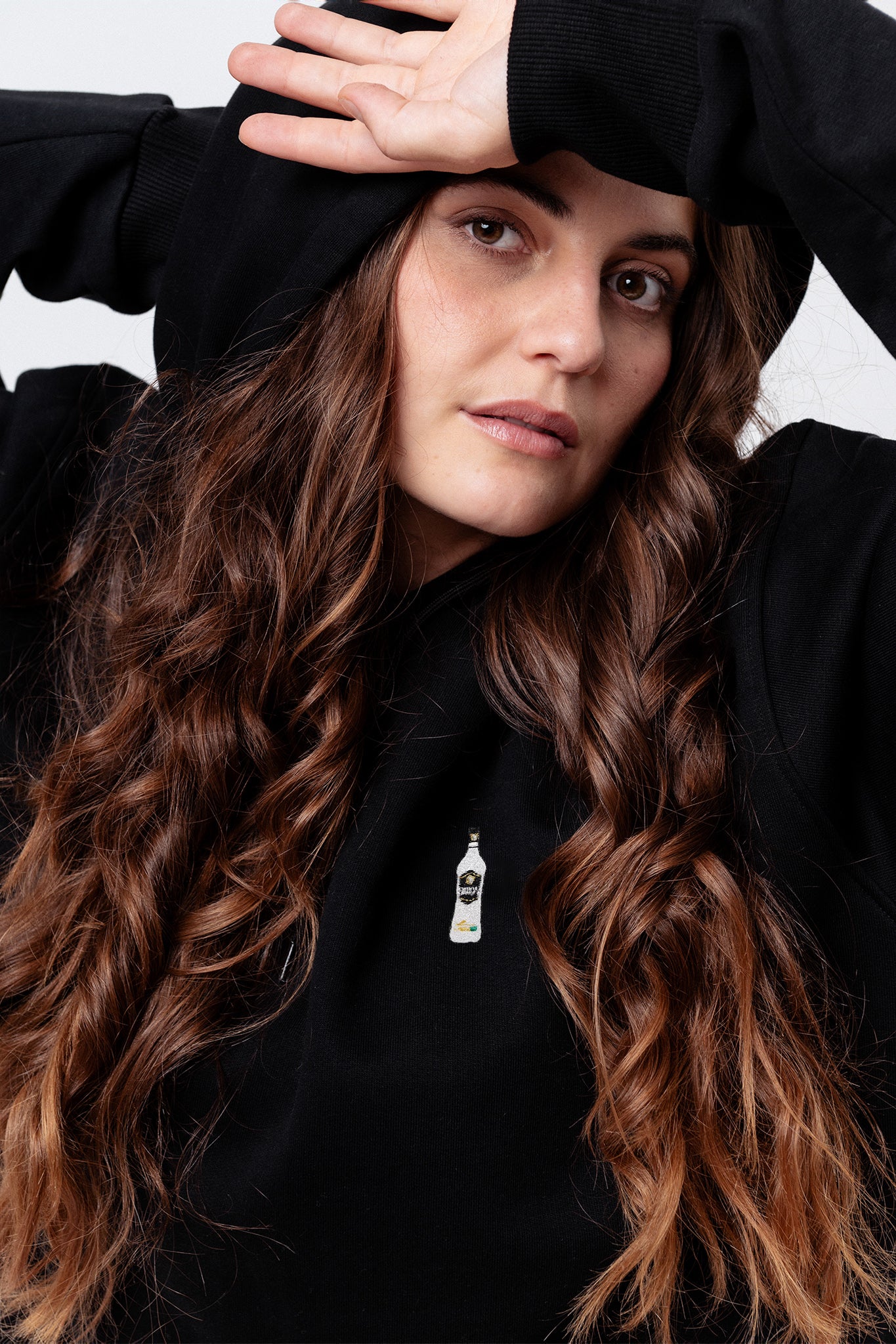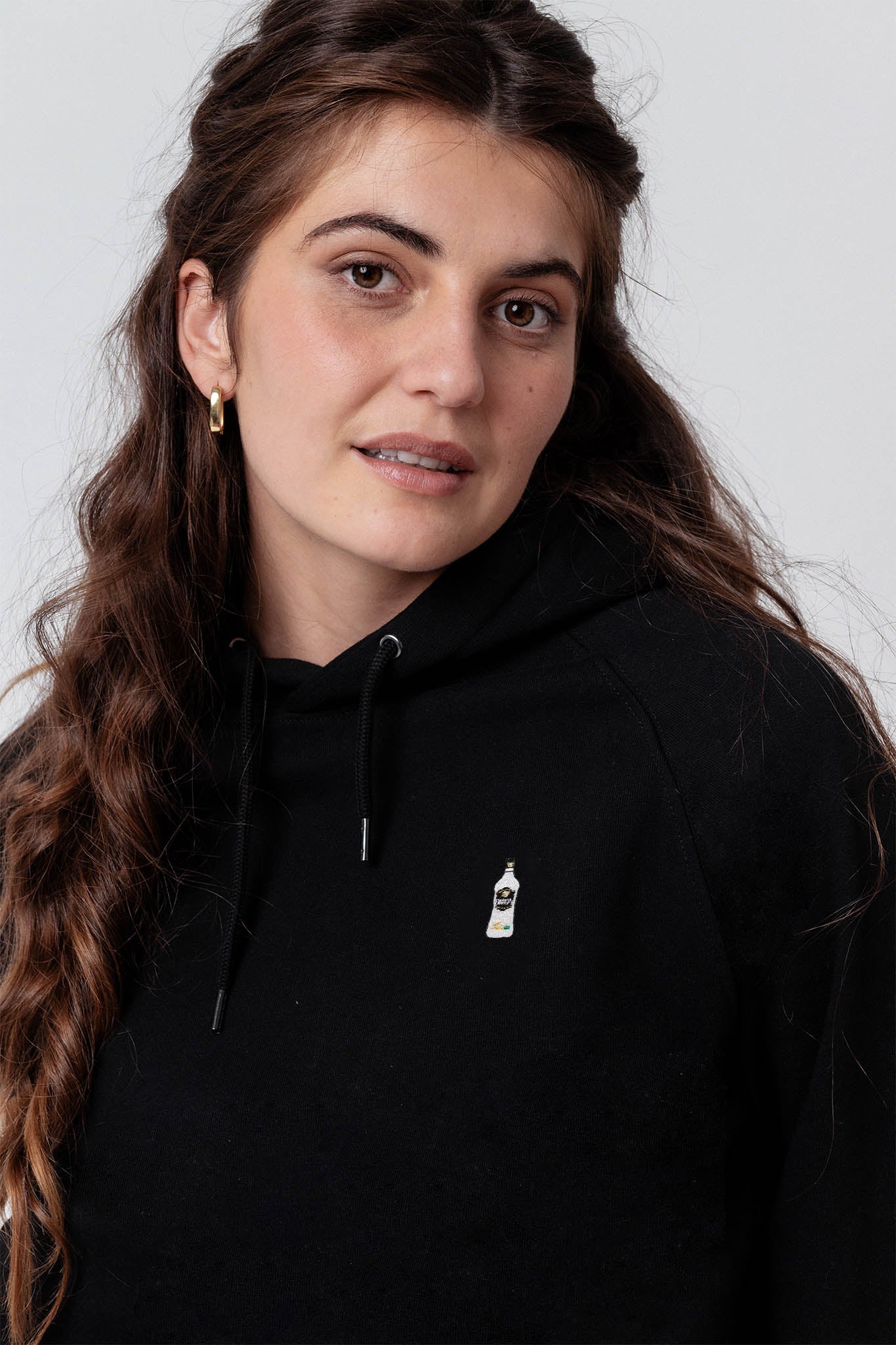 Super hochwertiger Bio Baumwoll Unisex Hoodie mit schwerem Stoff (350gsm) und der offiziellen gestickten Mangaroca Batida de Côco®  Bouteille