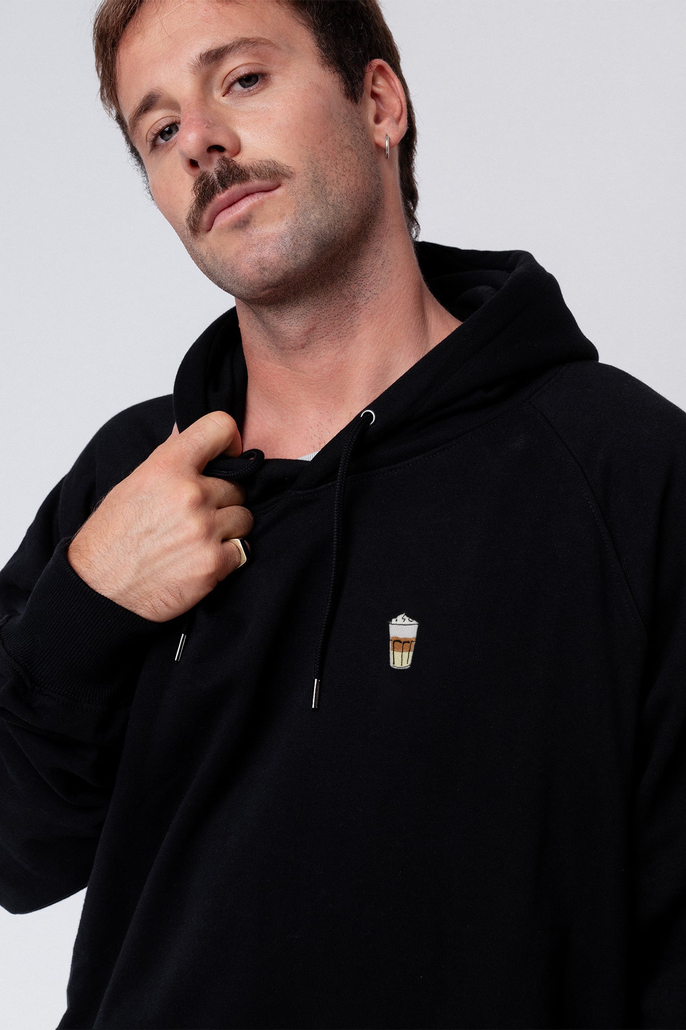 Super hochwertiger Bio Baumwoll Unisex Hoodie mit schwerem Stoff (350gsm) und gesticktem Latte Macchiato Design