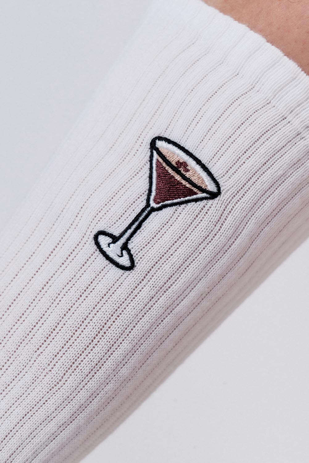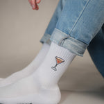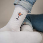Super hochwertige Bio Baumwoll Crew Socken mit gesticktem Espresso Martini Design