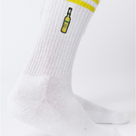 Zwei sonnig-gelbe Streifen machen das Design komplett und bringen dir das Dolce Vita direkt an die Füße. 🍋🧦☀️