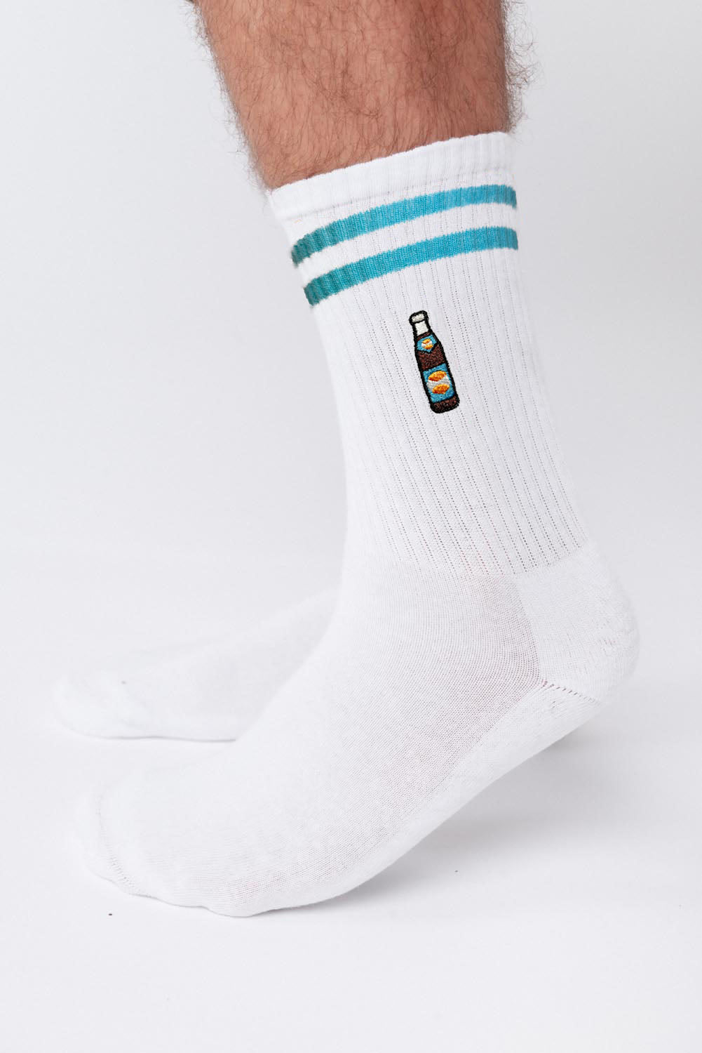 • Brodé sur les deux chaussettes (à l'extérieur de chacune)