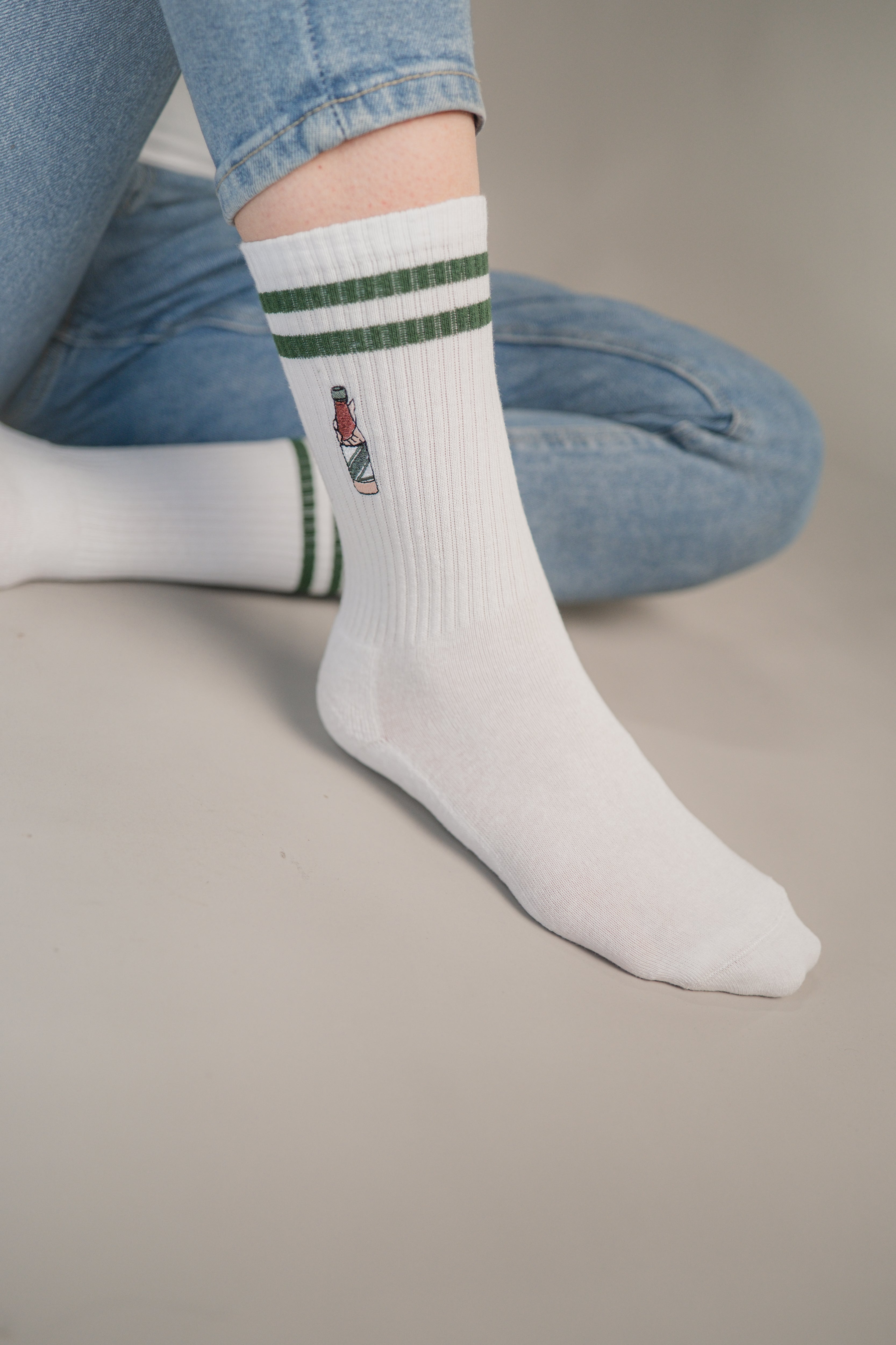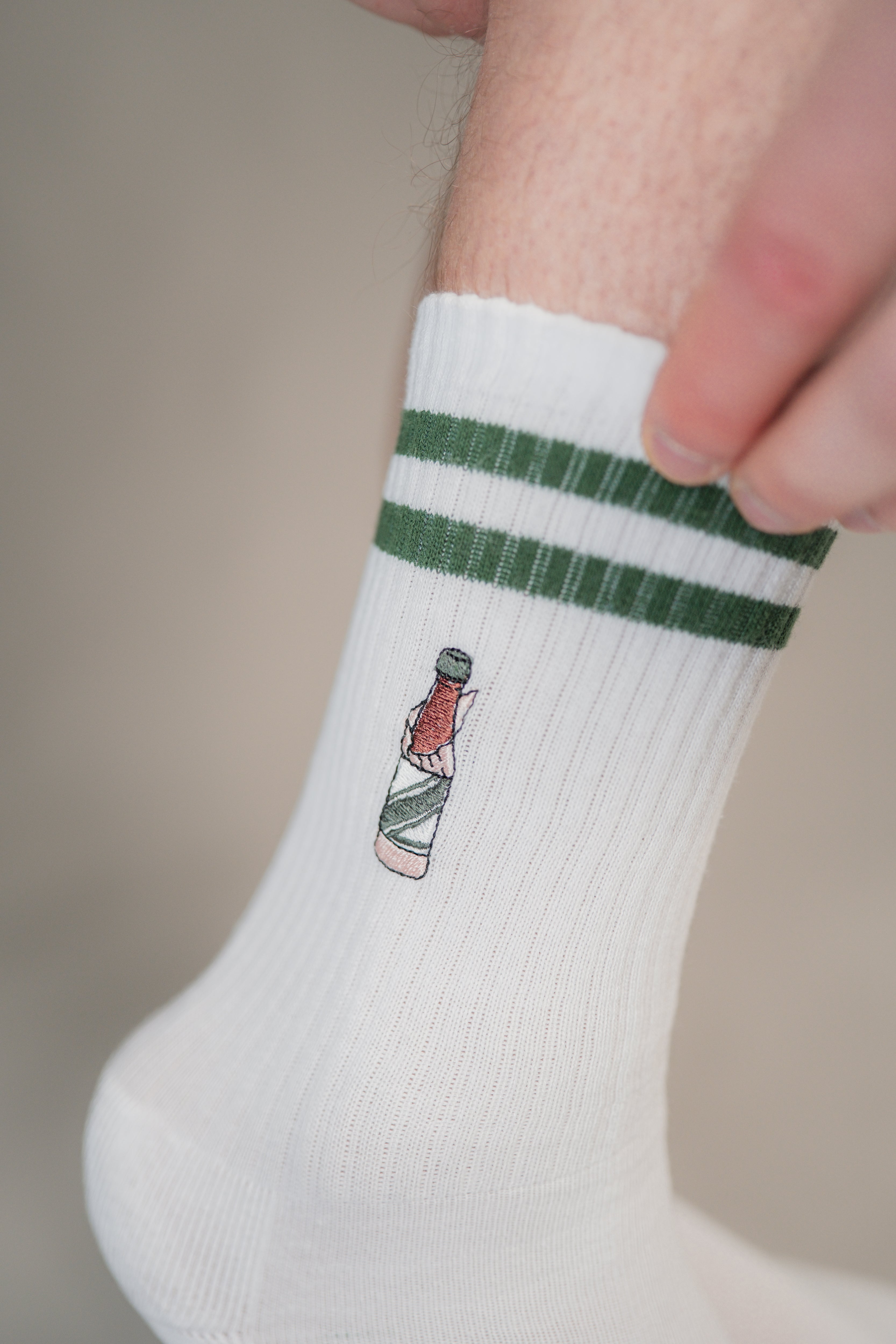 Fashion Drinks bietet eine einzigartige Kombination aus exklusiven, handgezeichneten Designs, hoher Qualität und Nachhaltigkeit. Nur bei uns findest du Socken mit extrem detaillierter Stickerei. Unsere Socken, darunter beliebte Marken wie Underberg, Bionade und Früh Kölsch, sind aus 80 % zertifizierter Bio-Baumwolle gefertigt. Sie bieten nicht nur ein tolles Tragegefühl, sondern auch schnellen Versand – ideal für jede Gelegenheit! Wir arbeiten mit über 30 Partnern aus der Getränkeindustrie zusammen und bieten exklusive, offizielle Designs, die du nur bei uns findest.
