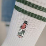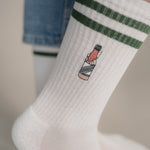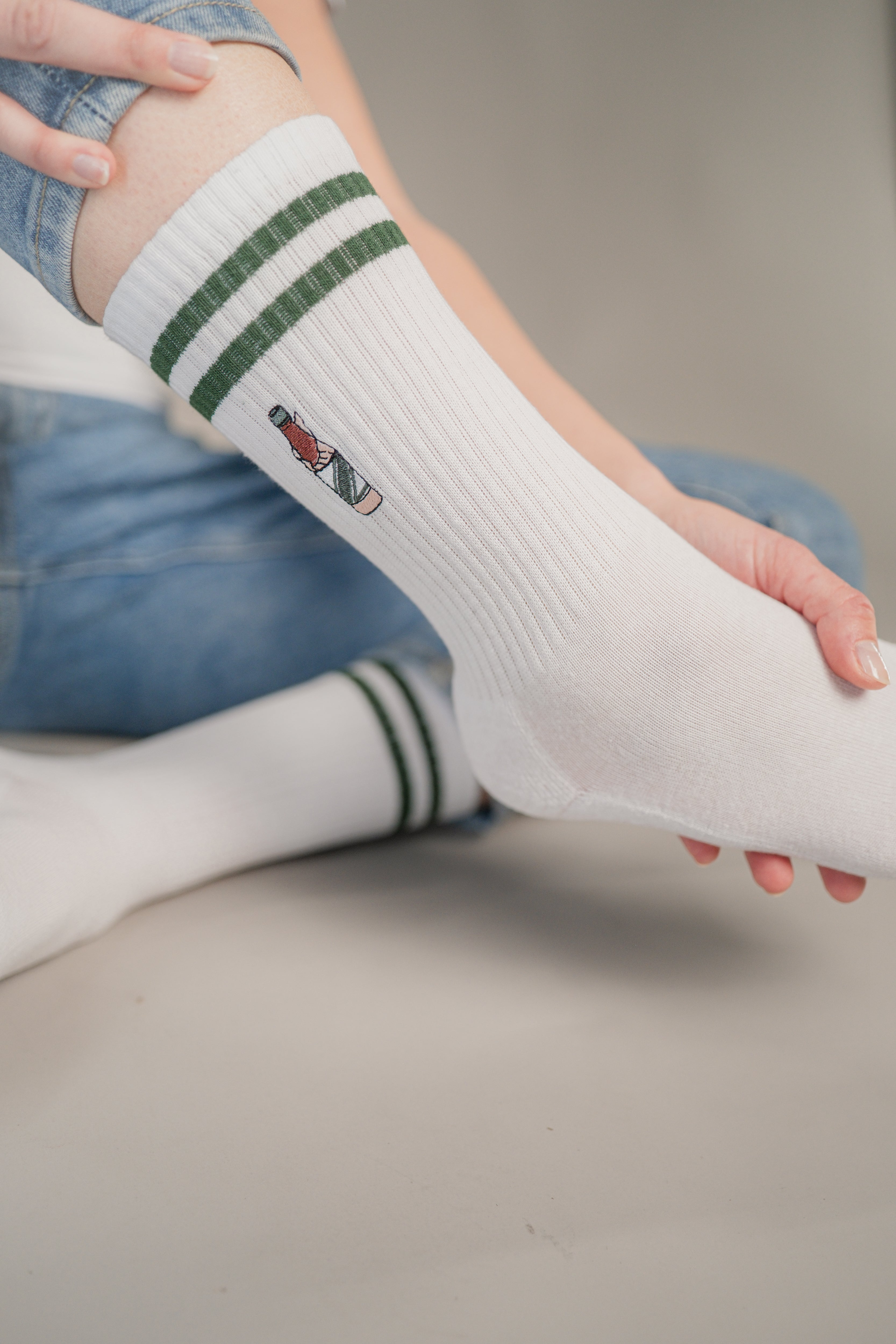 Chaussettes Crew en coton bio de super qualité avec design officiel brodé Underberg® et bandes vertes