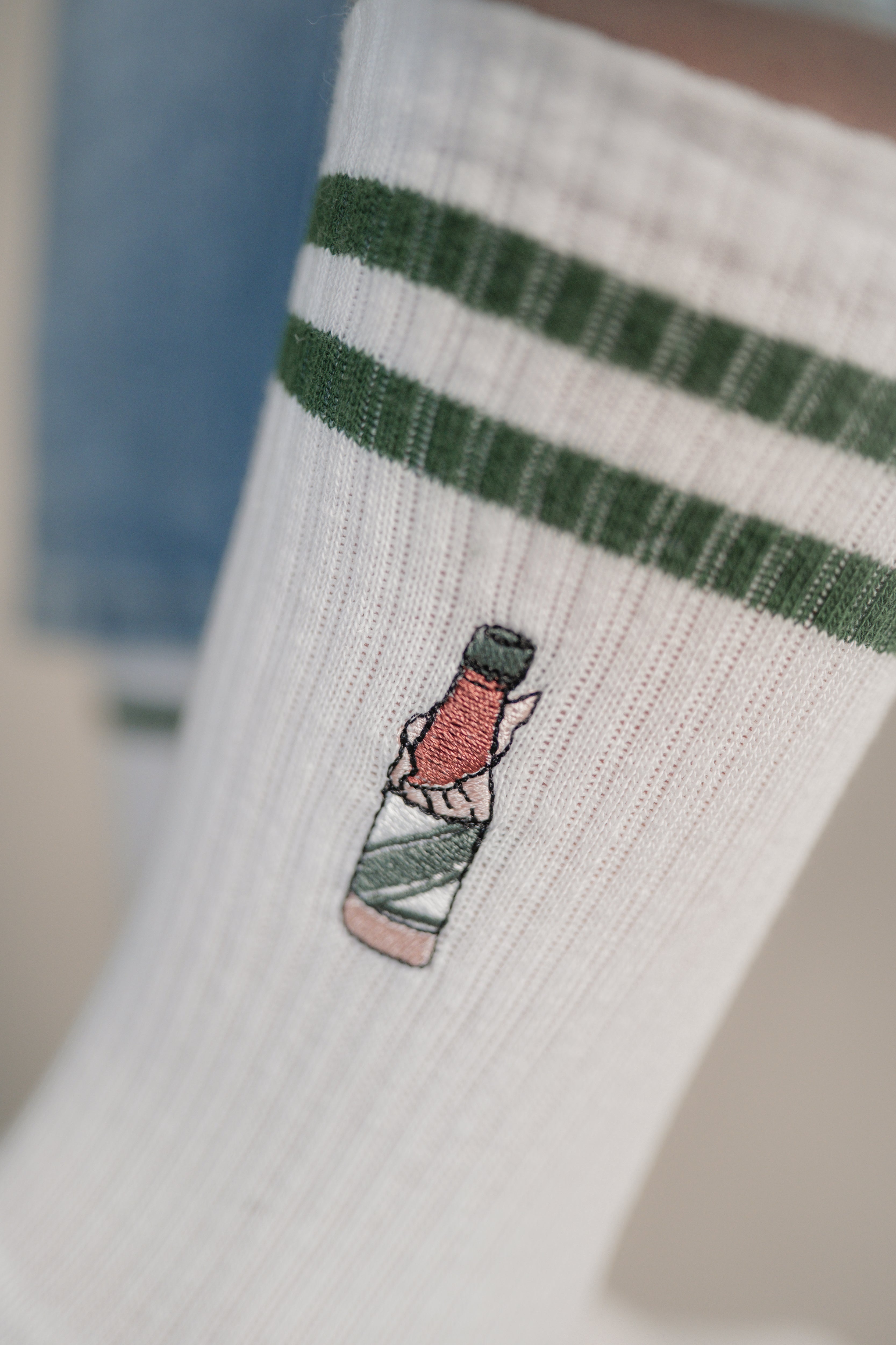 Die Stickerei auf unseren Fashion Drinks Socken bleibt auch nach mehrmaligem Waschen in einwandfreier Form. Wir verwenden präzise Industriemaschinen, die speziell für feine, detaillierte Stickarbeiten entwickelt wurden. So bleibt die Stickerei stabil und die Socken behalten ihre Form. Um die Qualität zu erhalten, empfehlen wir, die Socken bei niedrigen Temperaturen zu waschen und sie auf links zu drehen.