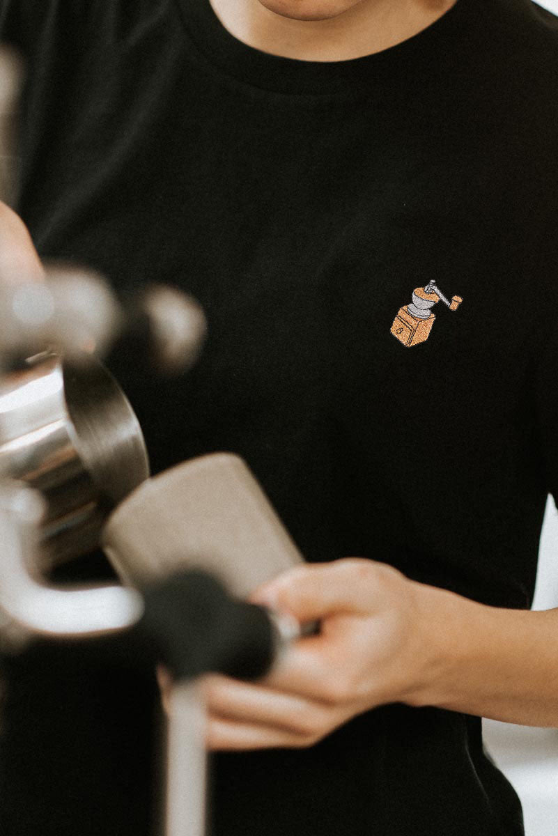 Kaffeemühle | Besticktes Bio Baumwoll Frauen T-Shirt