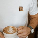 Super hochwertiges Bio Baumwoll Unisex T-Shirt mit schwerem Stoff (190gsm) und gesticktem  Coffee Bag Design