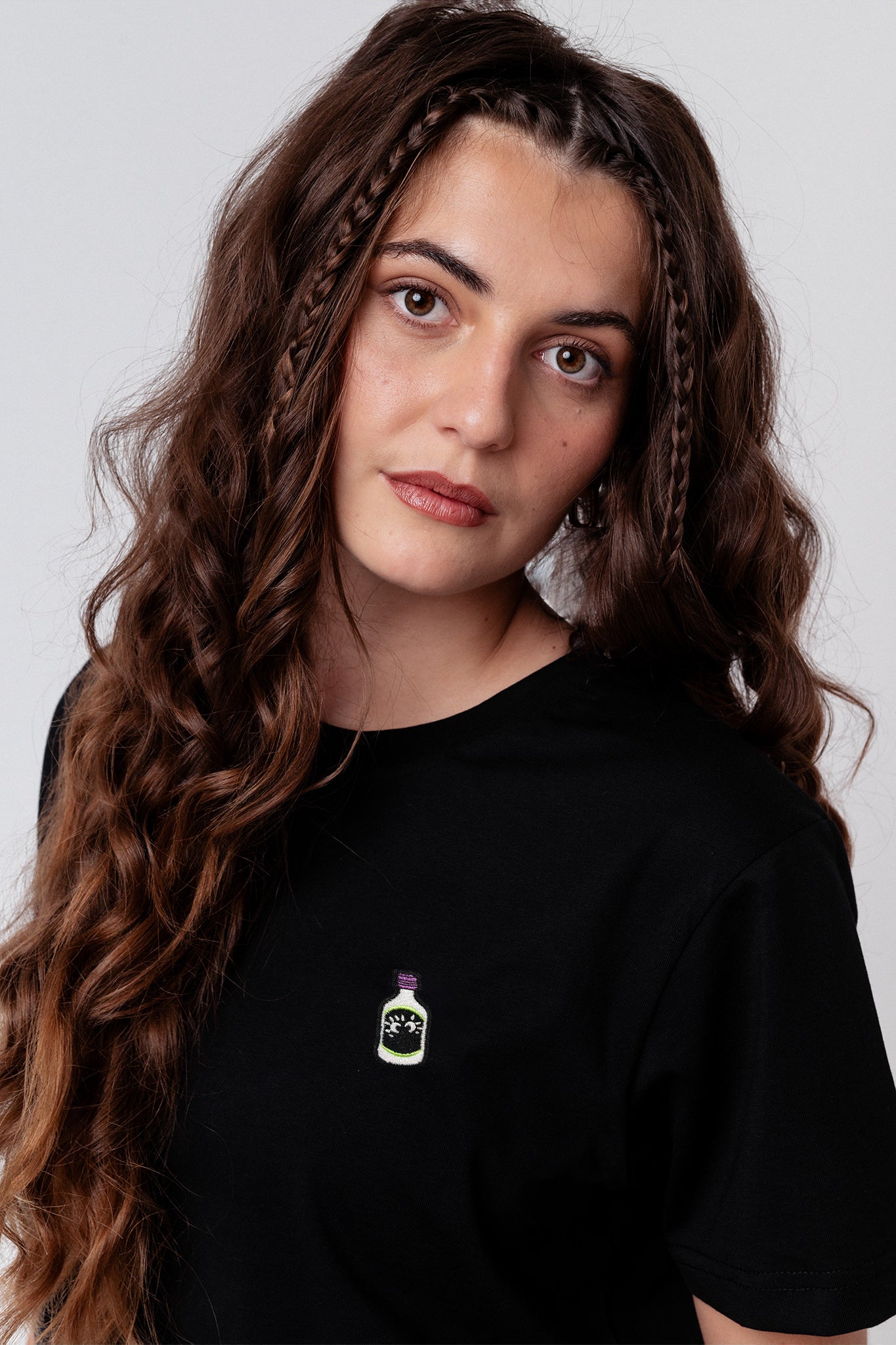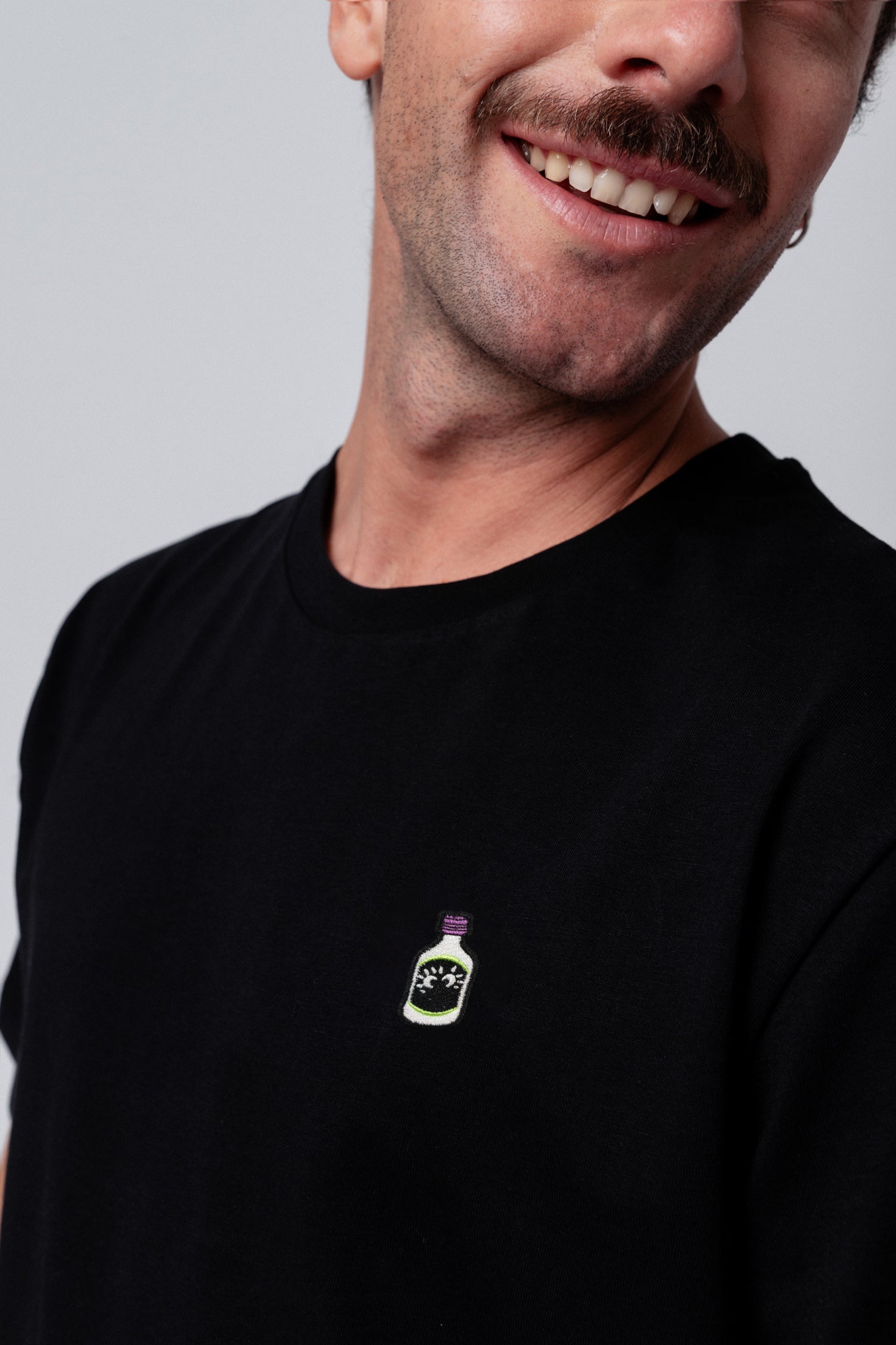 Besticktes Bio Baumwoll Unisex T-Shirt mit schwerem Stoff (190gsm) und der offiziellen gestickten Kleiner Feigling Flasche