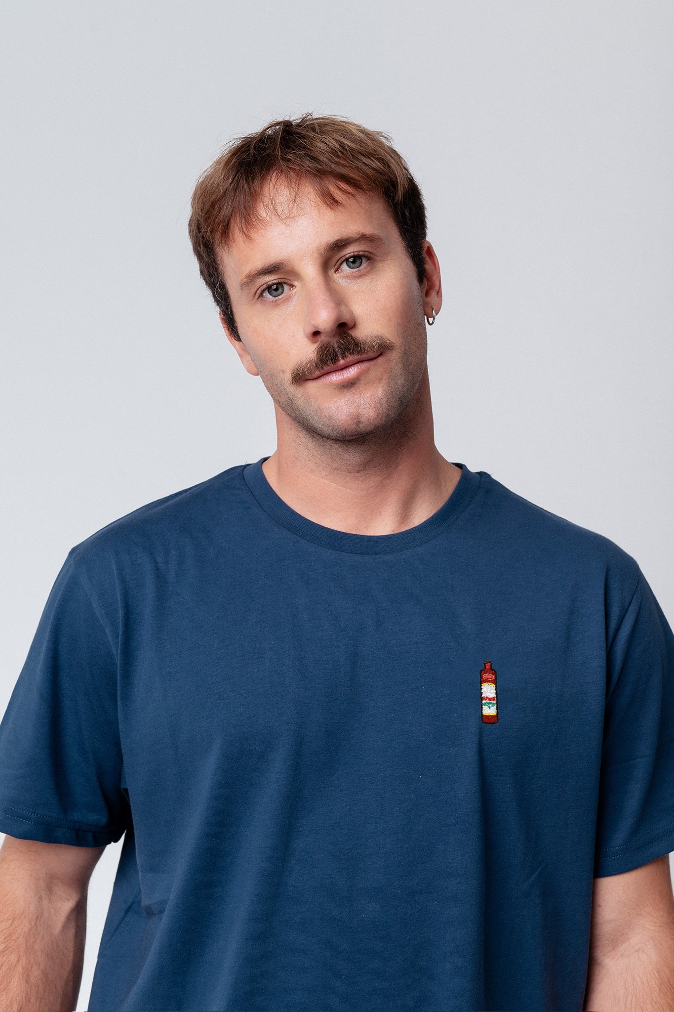 Besticktes Bio Baumwoll Unisex T-Shirt mit schwerem Stoff (190gsm) und der offiziellen gestickten Blutwurz Flasche