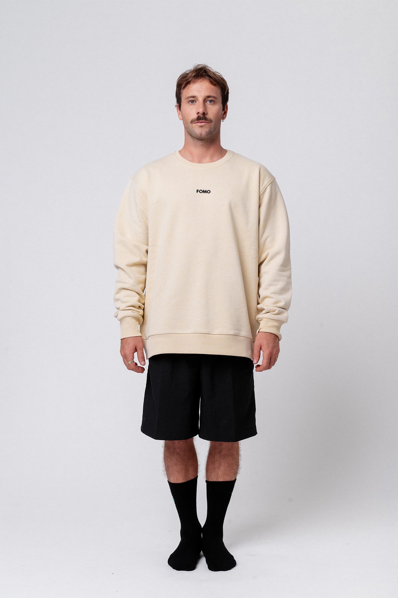Bestickter Bio Baumwoll Unisex Pullover mit schwerem Stoff (320gsm) und gesticktem FOMO (Fear of missing out) Écriture