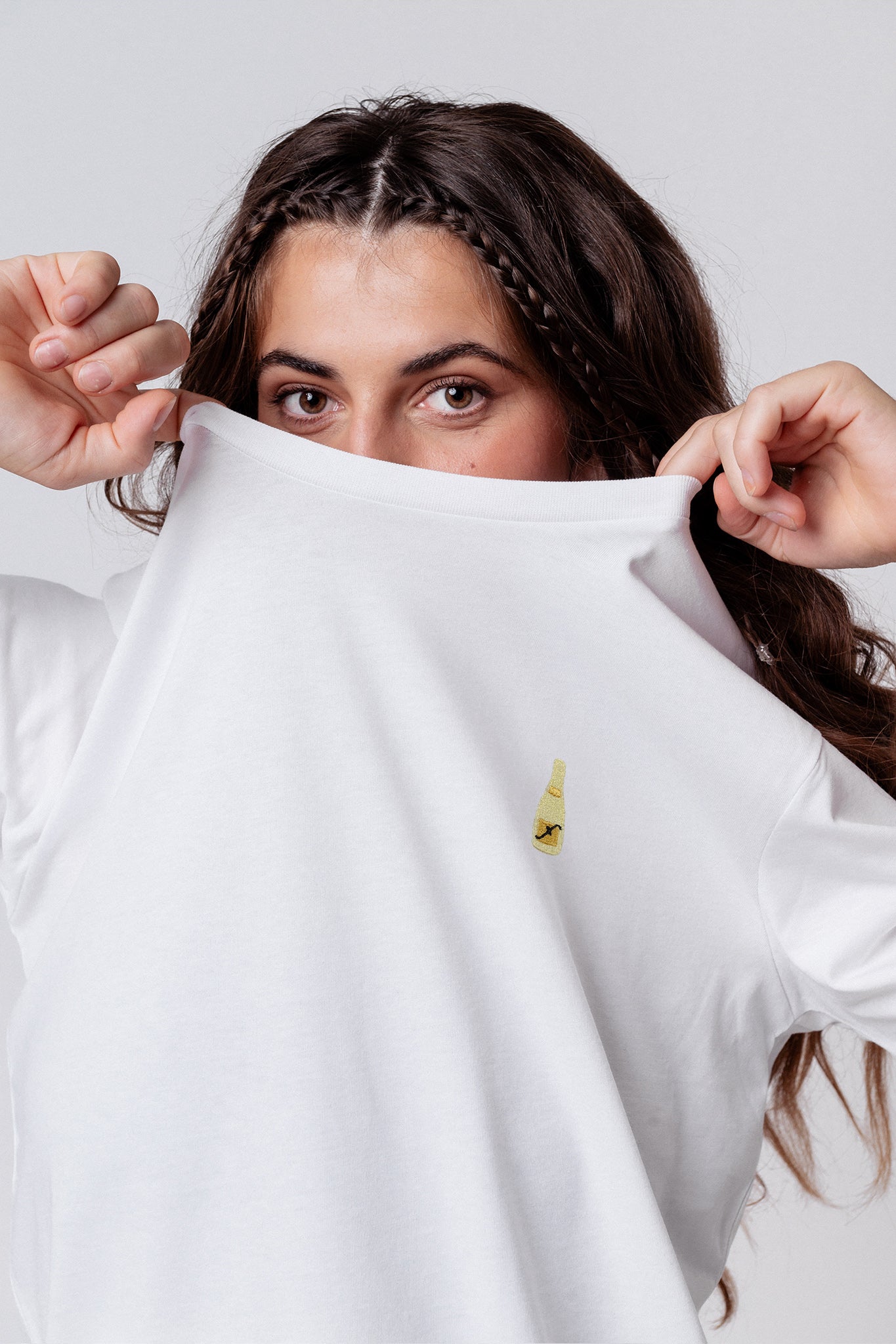 Besticktes Bio Baumwoll Unisex T-Shirt mit schwerem Stoff (190gsm) und der offiziellen gestickten Freixenet Flasche