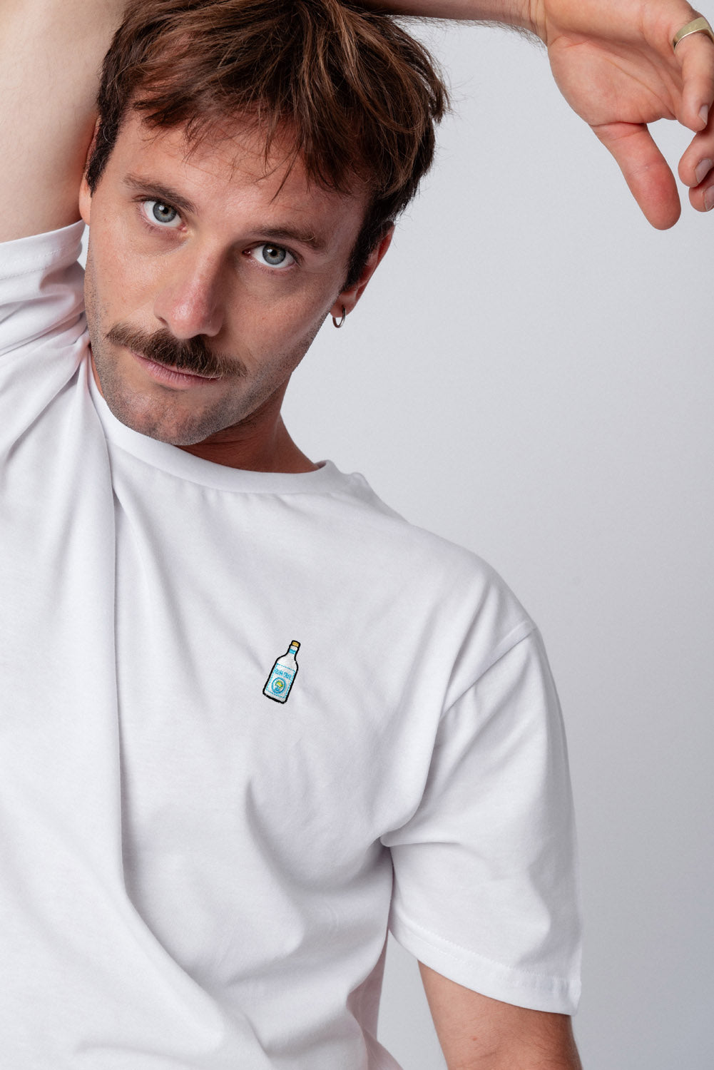 Super hochwertiges Bio Baumwoll Unisex T-Shirt mit schwerem Stoff (190gsm) und der offiziell gestickten GIN SUL Flasche