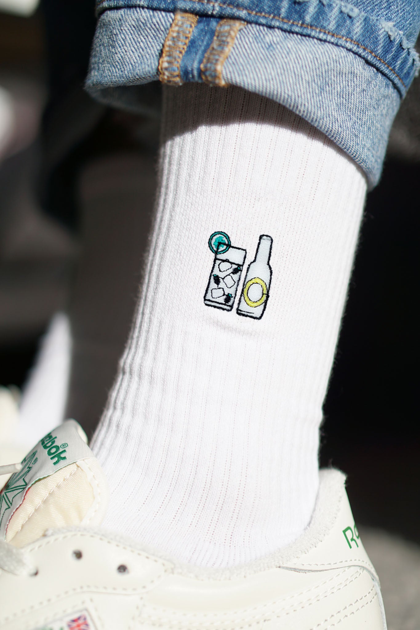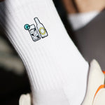 Chaussettes Crew en coton bio de super qualité avec un design brodé Gin & Tonic