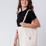 Bestickte, fair produzierte Bio-Baumwoll-Tragetasche im offiziellen Never say No to PRMTVO Design.