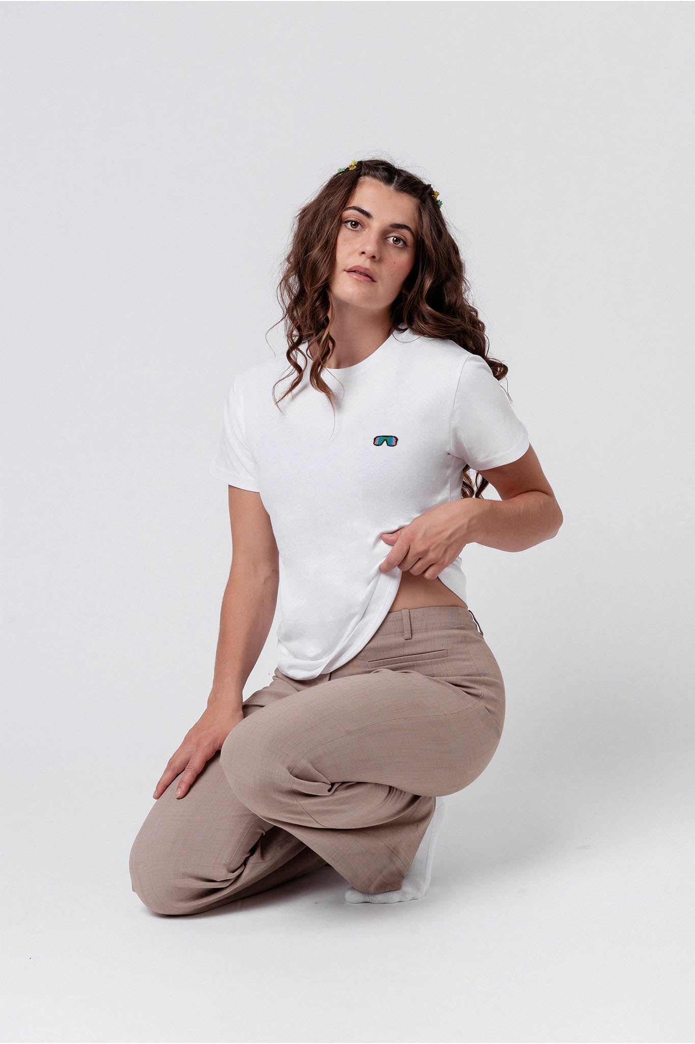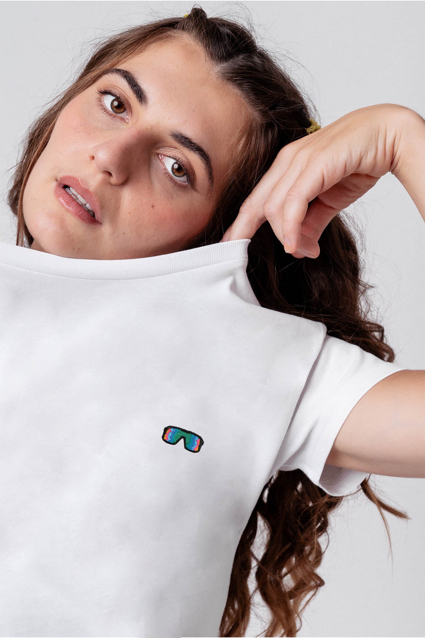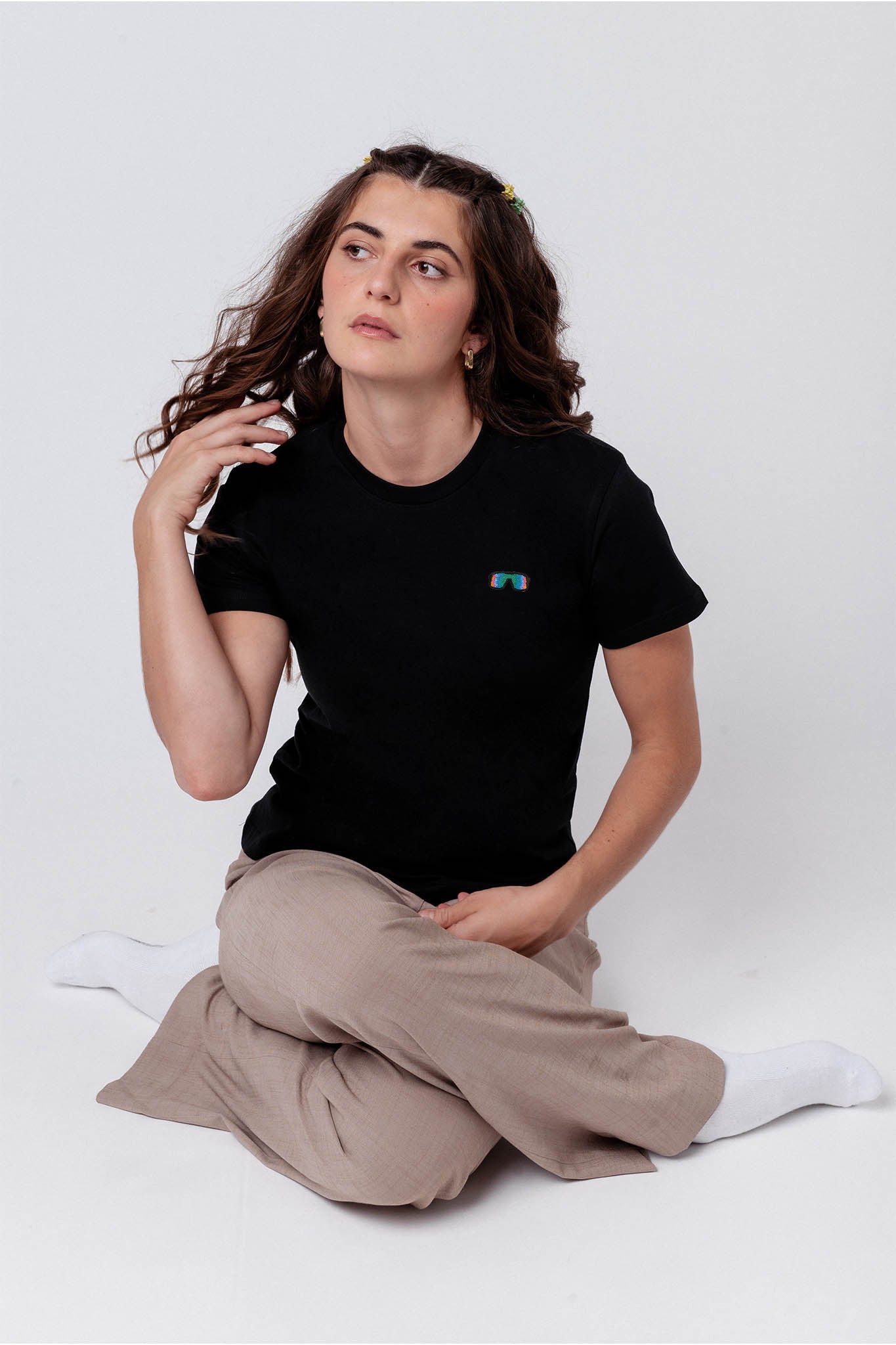 Besticktes Bio Baumwoll Frauen T-Shirt mit extrem angenehmen Stoff (155gsm) und gesticktem schnelle Brille Design