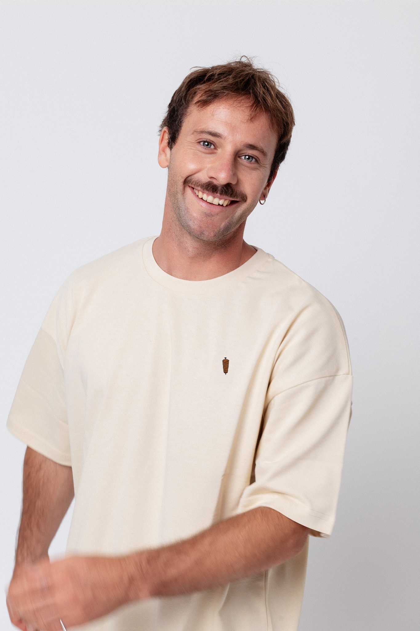Heavy Oversized Bio Baumwoll T-Shirt mit extra schwerem Stoff (230gsm) und gesticktem Dönerspieß Design