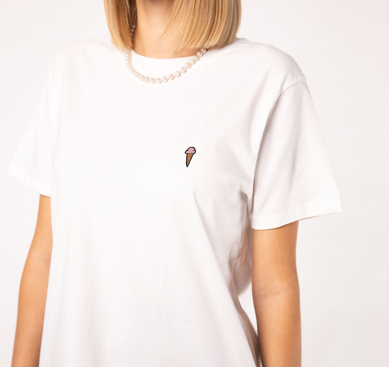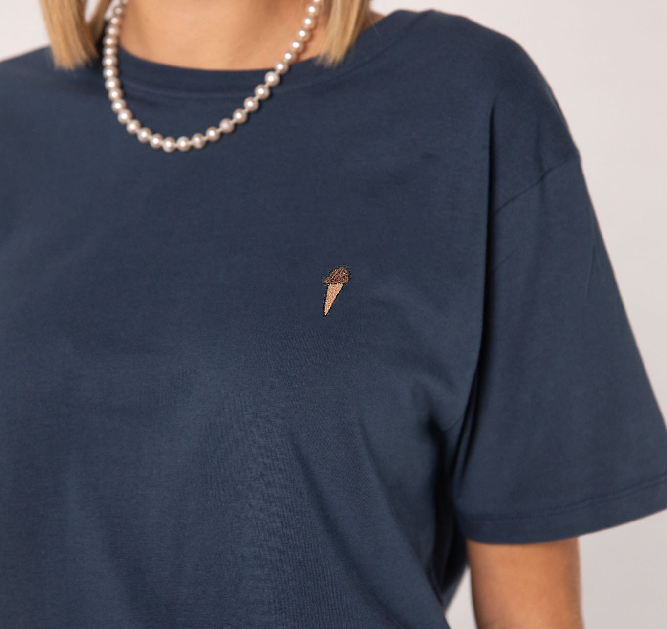 Hochwertige Stickerei auf weicher, atmungsaktiver Bio-Baumwolle.