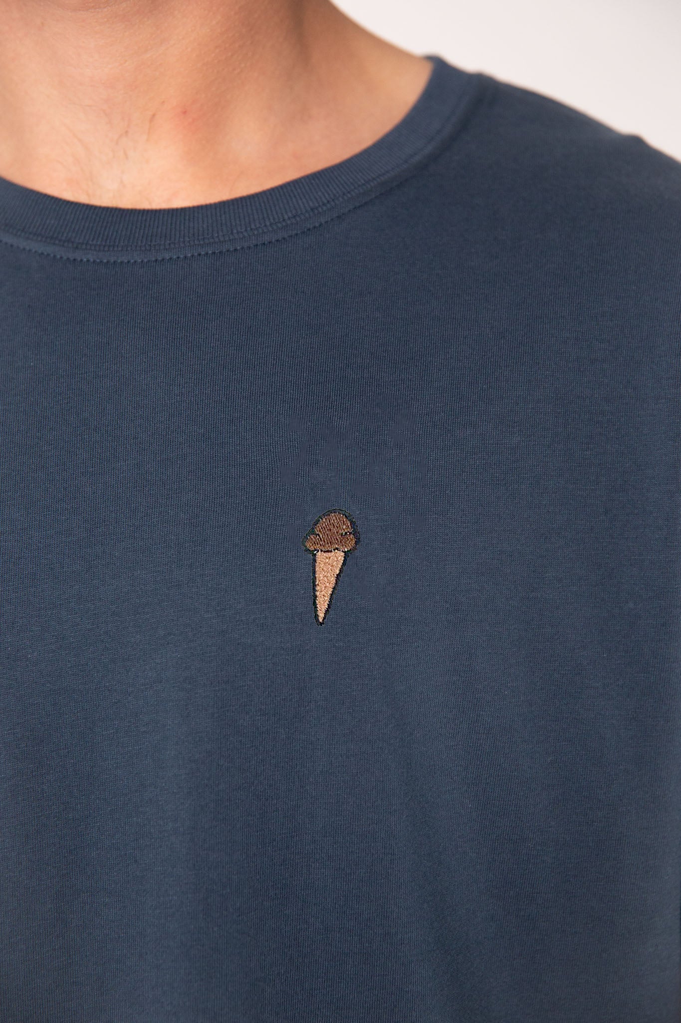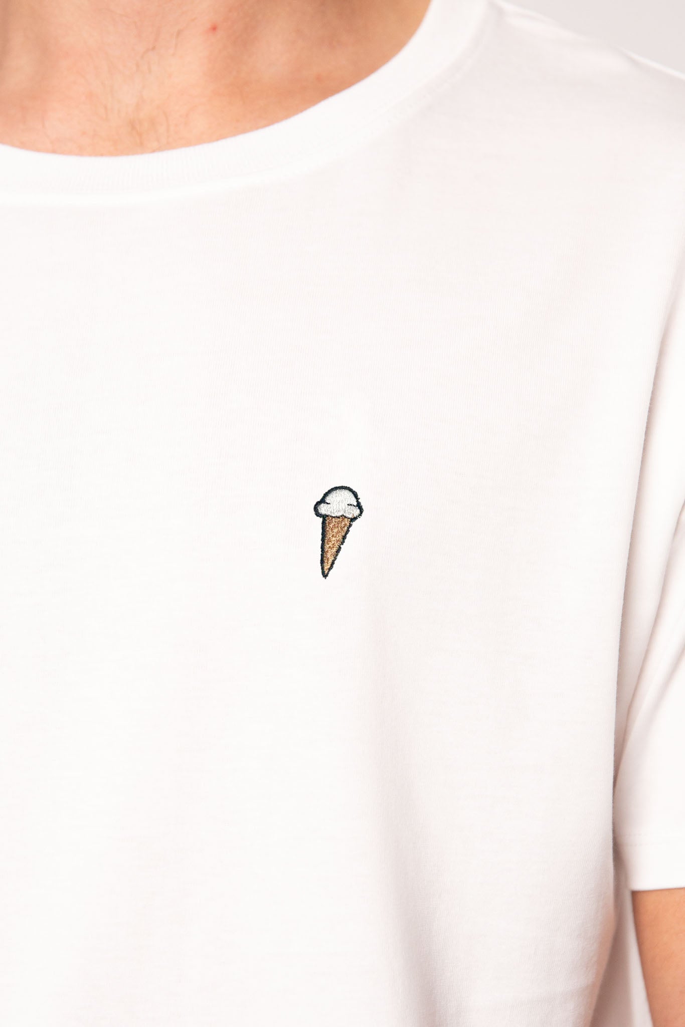 Besticktes Bio Baumwoll Unisex T-Shirt mit schwerem Stoff (190gsm) und gesticktem Eis Design - wähle deine Lieblingssorte: Schoki, Erdbeere oder Vanille 🍦