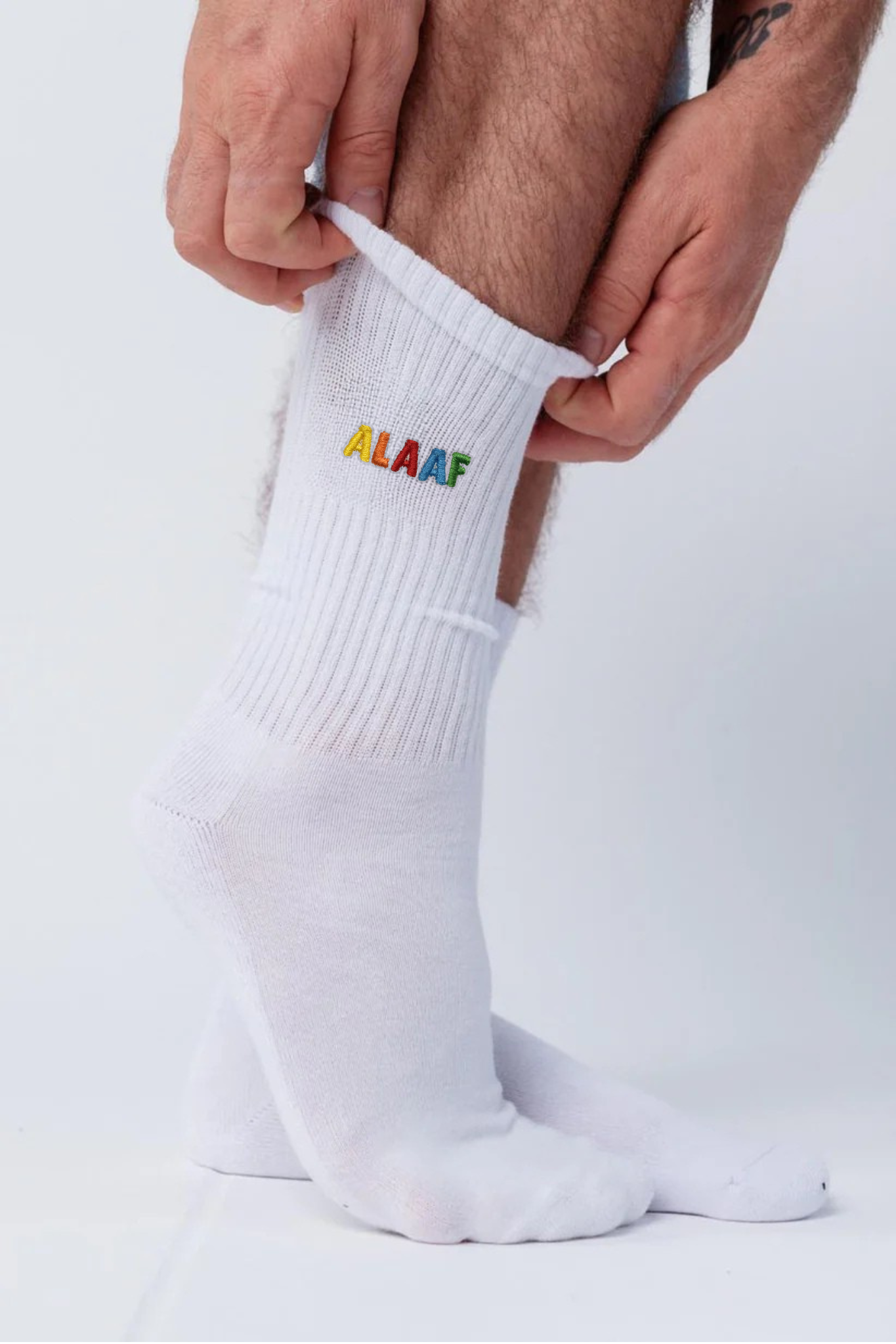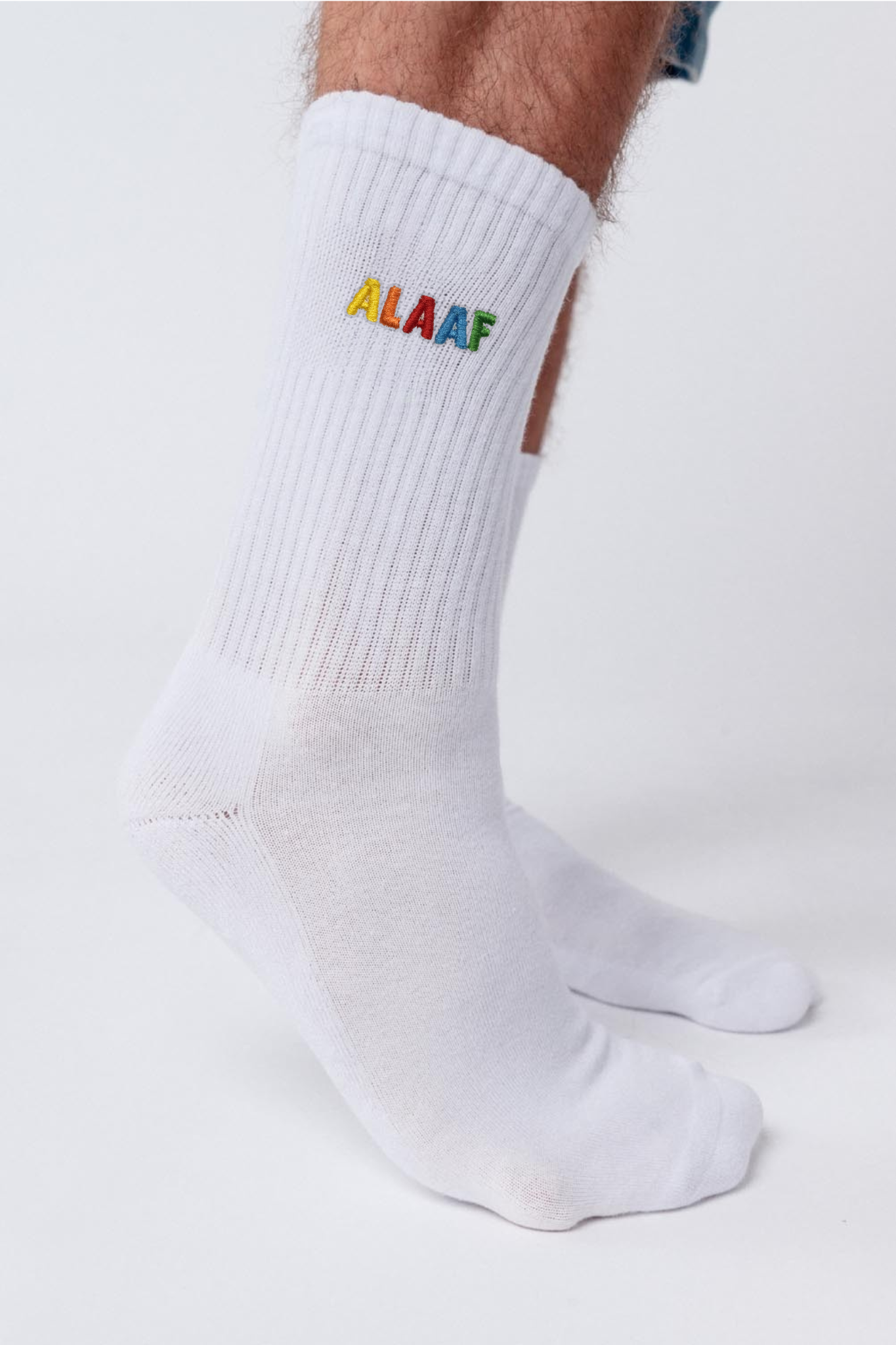 Perfekt für die Karnevalsaison: Super hochwertige Bio Baumwoll Crew Socken mit gesticktem Alaaf Schriftzug
