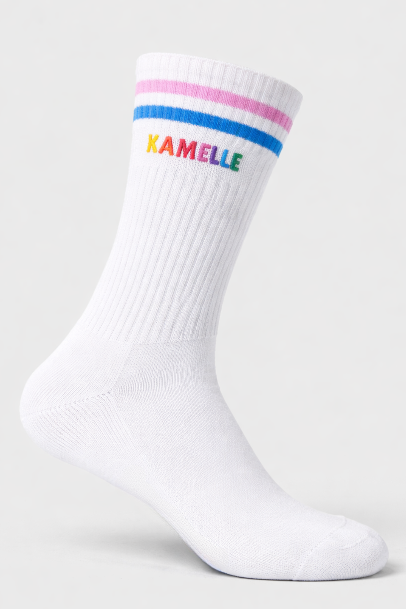 • Brodé sur les deux chaussettes (à l'extérieur de chacune)