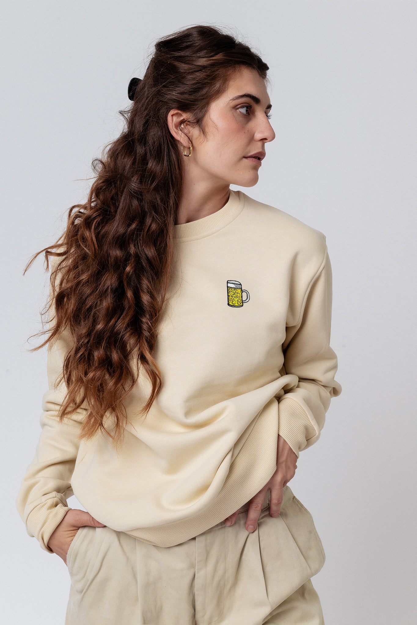 Bestickter Bio Baumwoll Unisex Pullover mit schwerem Stoff (320gsm) und gesticktem Maßkrug Design